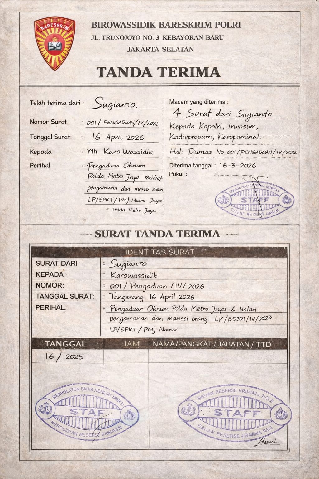 Ia juga menyinggung aspek kewenangan wilayah dalam penanganan perkara. “Dalam surat disebutkan dugaan peristiwa terjadi di Kabupaten Tangerang, namun penanganan dilakukan oleh Polda Metro Jaya. Hal ini saya pertanyakan dalam pengaduan yang saya ajukan,” katanya.