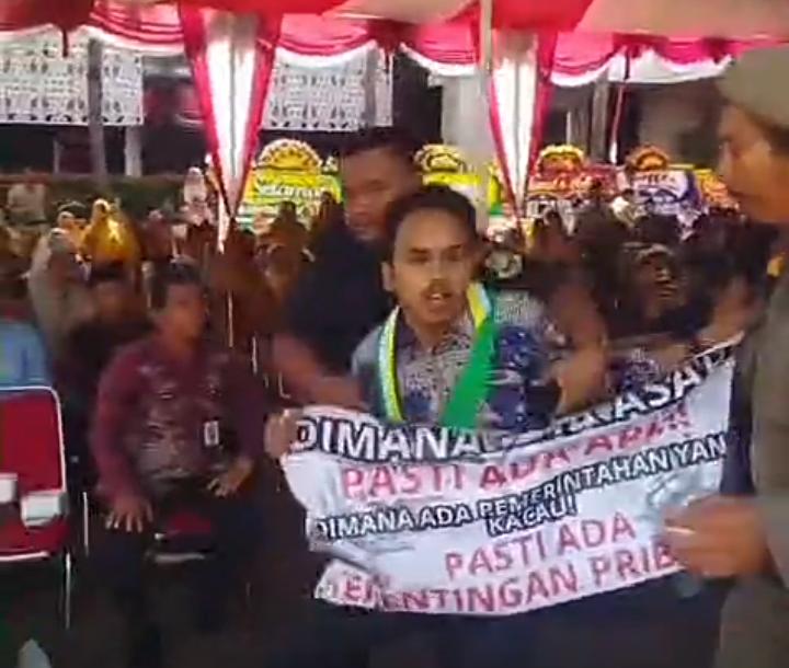 Berdasarkan pantauan tim Jurnal KUHP di lokasi, kedua mahasiswa tersebut tiba-tiba masuk ke area tengah dengan membawa spanduk berisi kritik terhadap kinerja Pemerintah Kota Cilegon. Mereka kemudian berteriak lantang, menarik perhatian seluruh tamu yang hadir.