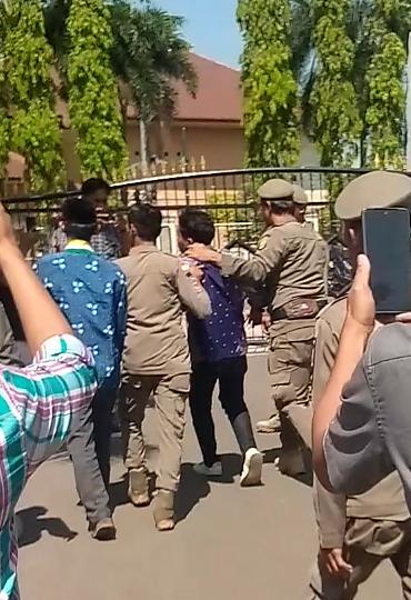 Tak lama setelah aksi berlangsung, petugas keamanan dari Satuan Polisi Pamong Praja (Satpol PP) Kota Cilegon segera mengamankan kedua mahasiswa tersebut dan membawa mereka keluar dari lokasi acara. Situasi pun berangsur kondusif dan rangkaian perayaan HUT ke-27 Kota Cilegon kembali dilanjutkan.
