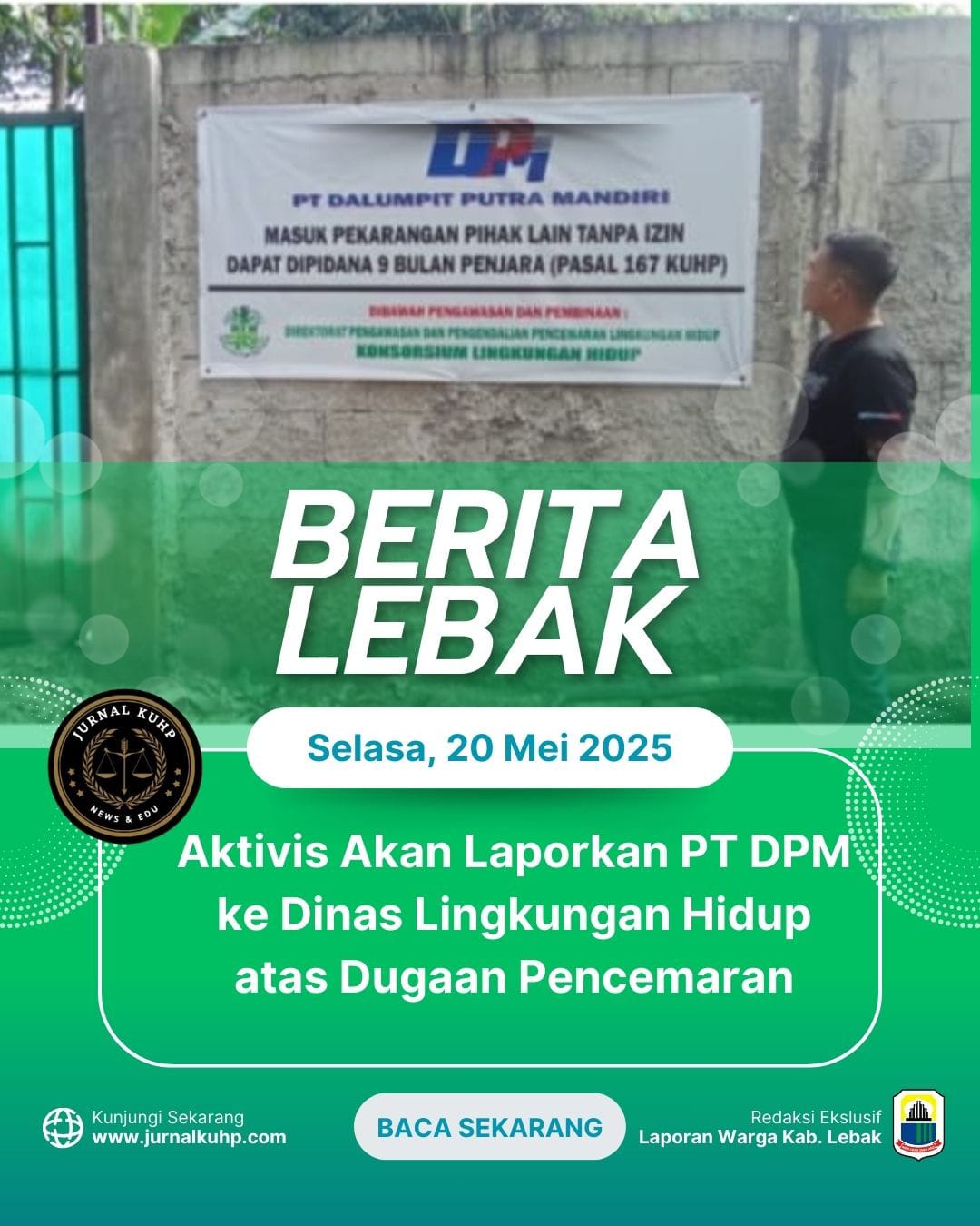 “Kami mendorong DLH Kabupaten Lebak dan DLH Provinsi Banten untuk segera melakukan inspeksi mendadak ke lokasi pengolahan tersebut,” tegasnya.