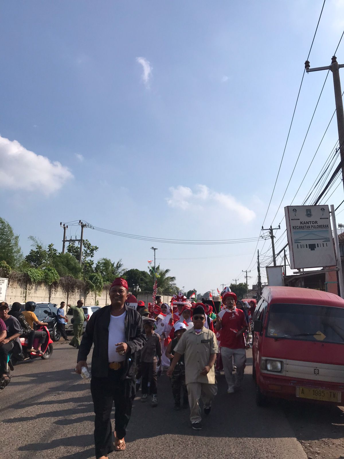 Setelah upacara, kemeriahan berlanjut dengan pawai kemerdekaan. Warga dengan antusias mengikuti pawai yang menempuh rute dari Kantor Kecamatan Pulomerak, melewati Jalan Raya Yos Sudarso, SMKN 4 Cilegon, hingga Komplek PLN Lebakgede, dan kembali ke titik awal.