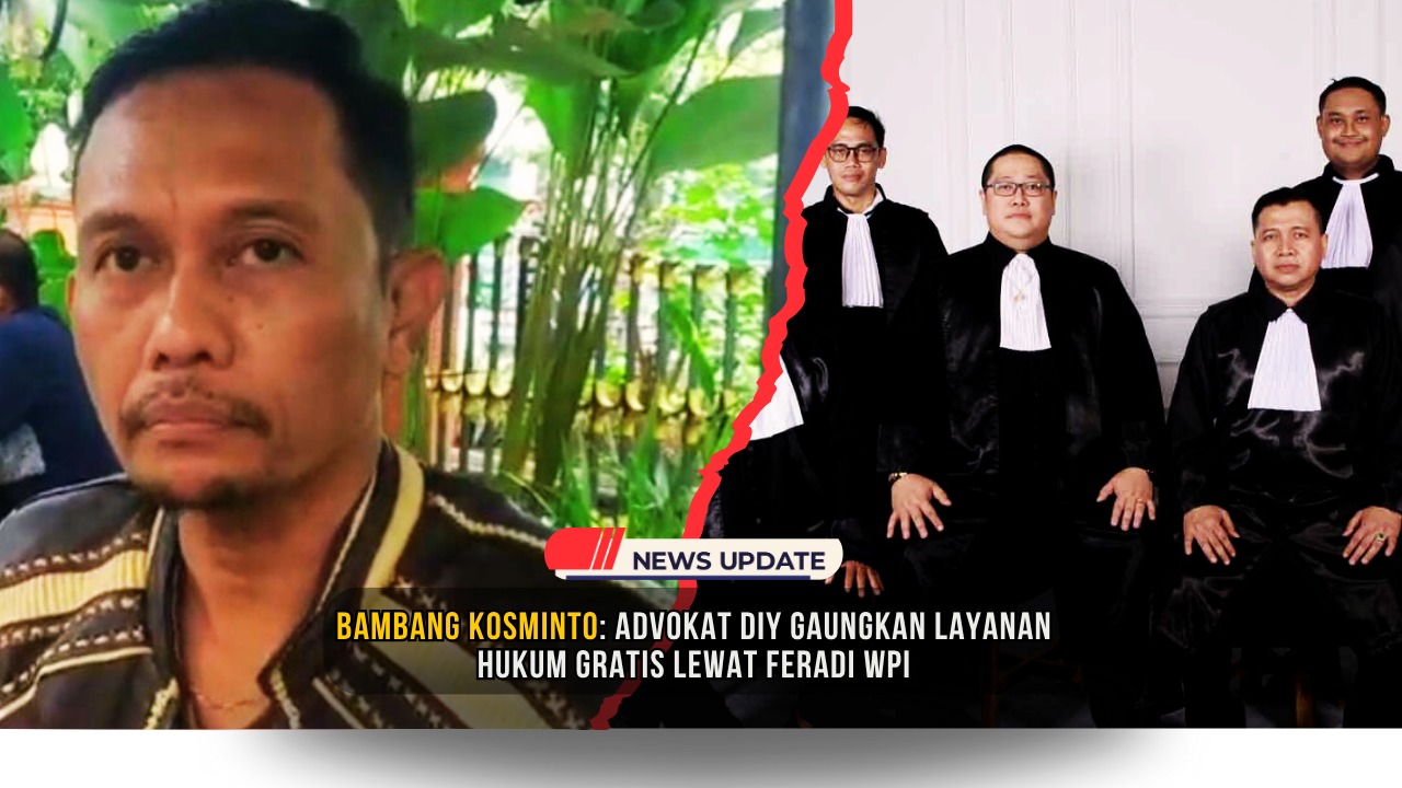 Yogyakarta – Ketua Dewan Pimpinan Daerah FERADI WPI Daerah Istimewa Yogyakarta, Bambang Kosminto, menegaskan komitmennya dalam membuka akses keadilan seluas-luasnya bagi masyarakat. Melalui program bantuan hukum tanpa biaya dan pembinaan advokat muda, FERADI WPI ingin mematahkan stigma bahwa proses hukum hanya milik kalangan atas.