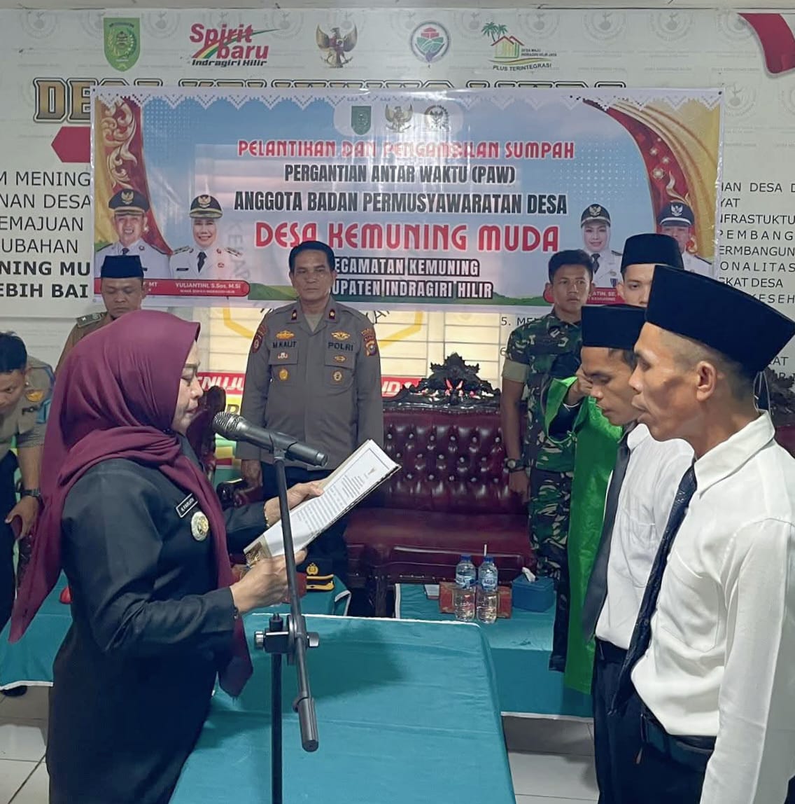 Kemuning, Inhil – Pemerintah Kecamatan Kemuning melaksanakan Pelantikan dan Pengambilan Sumpah Pergantian Antar Waktu (PAW) Anggota Badan Permusyawaratan Desa (BPD) Kemuning Muda untuk sisa masa bakti 2021–2029. Kegiatan berlangsung khidmat di Kantor Desa Kemuning Muda, Selasa (3/2/2026).