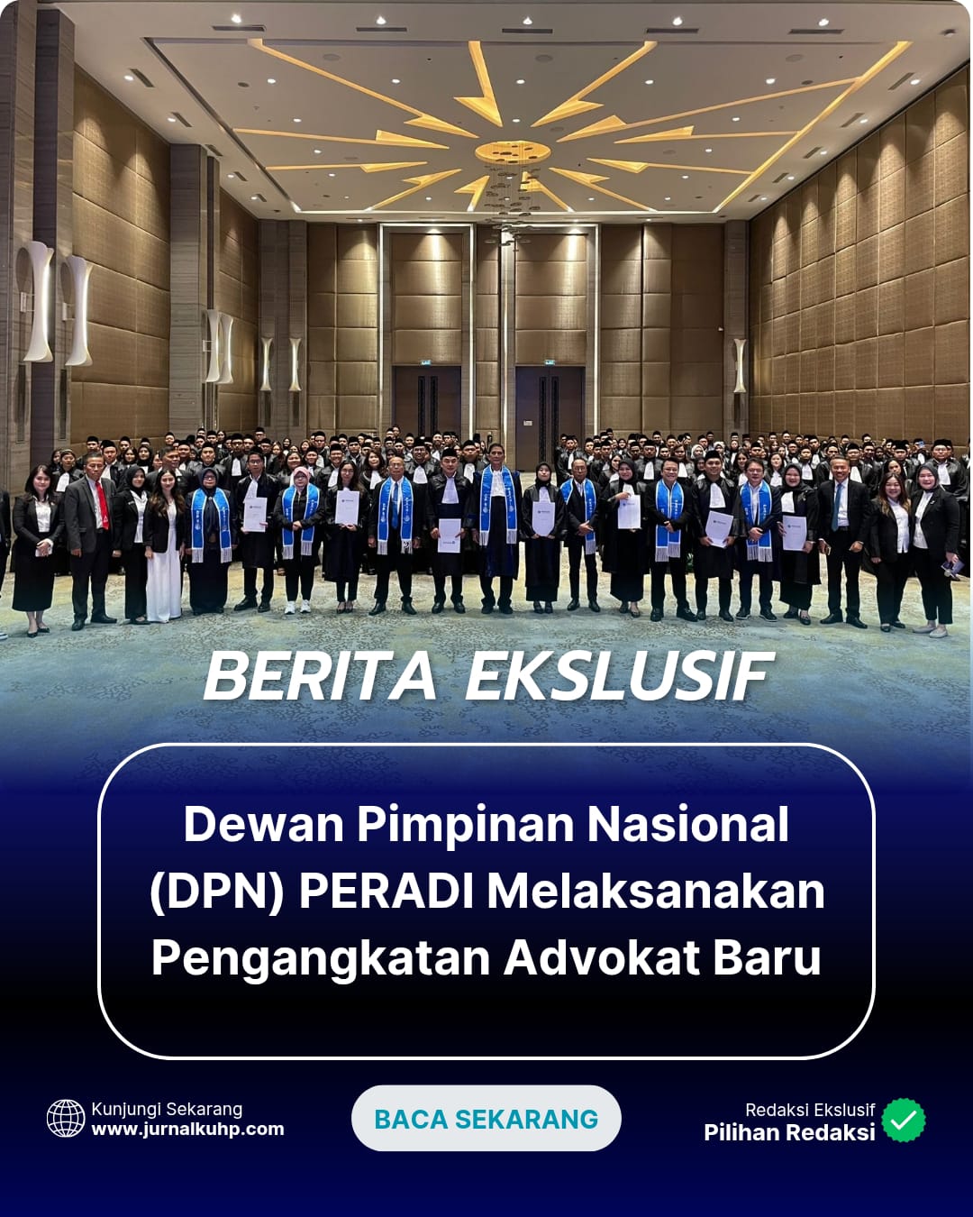 KOTA TANGERANG, JURNALKUHP.COM– Dewan Pimpinan Nasional (DPN) Perhimpunan Advokat Indonesia (Peradi) telah melaksanakan pengangkatan advokat baru di Ballroom Hotel Novotel TangCity, Kota Tangerang. Acara berlangsung khidmat dengan dihadiri jajaran pengurus DPN Peradi, pimpinan cabang, serta seluruh advokat yang dilantik, Selasa (23/09/2025).