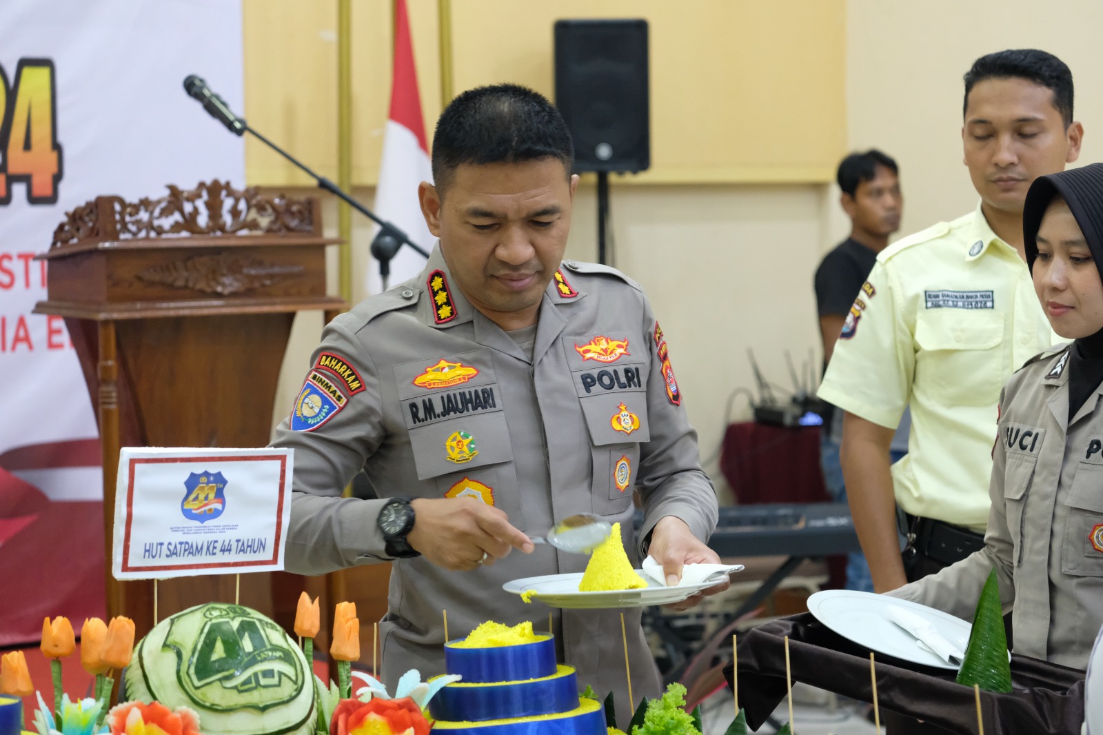 Acara peringatan HUT Satpam ke 44 tahun yang mengusung tema Satpam Sebagai Pengemban Fungsi Kepolisian Terbatas Nonyustisial, Siap Memelihara Kamtibmas Dalam Rangka Mewujudkan Indonesia Emas.