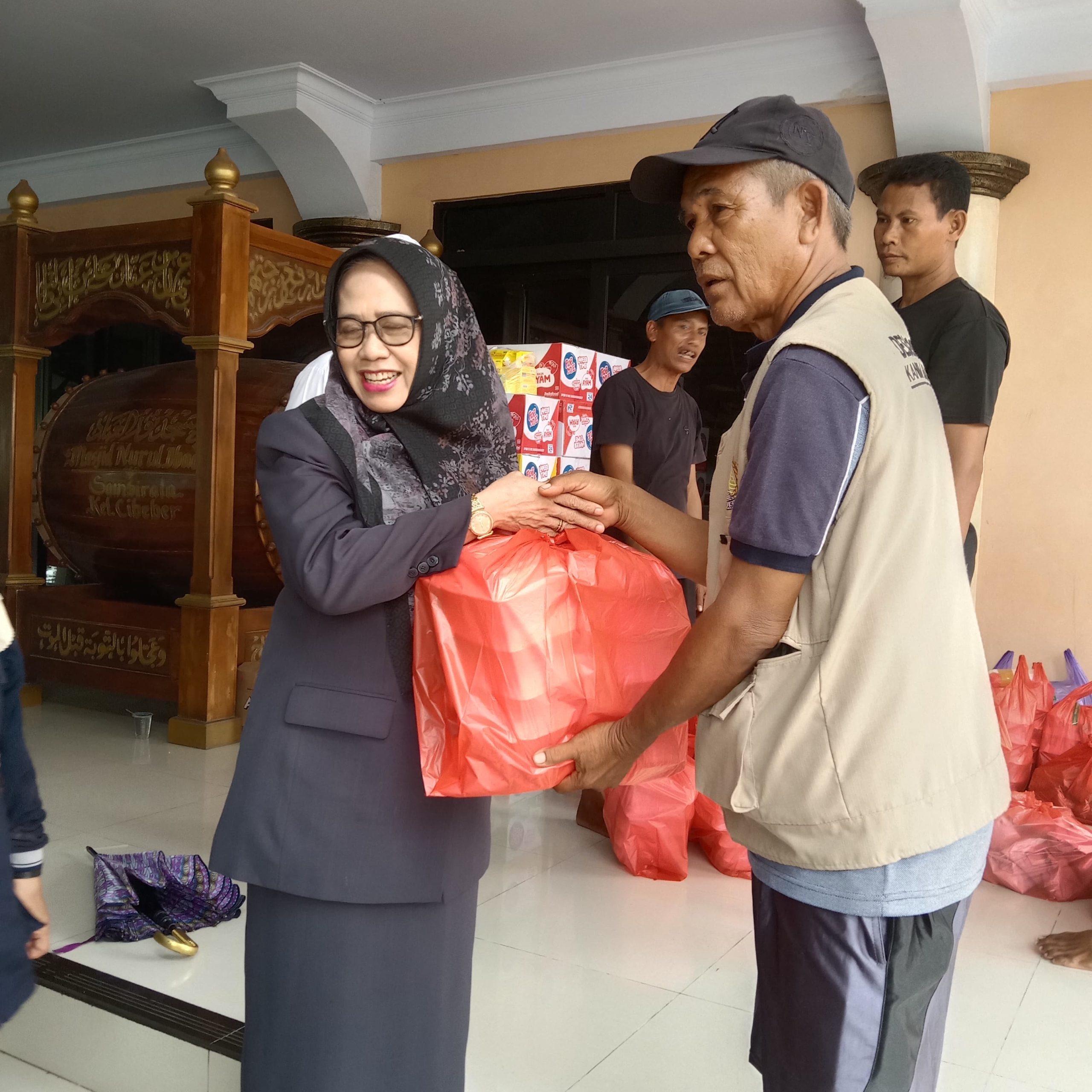 Penyerahan bantuan dilakukan langsung oleh Anggota DPRD Kota Cilegon, Hj. Abadiah, S.Pd., M.Si., kepada warga korban banjir.