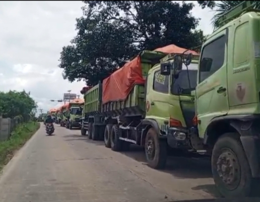 Pemandangan armada tambang yang berhenti sembarangan tersebut terjadi di jalur yang cukup aktif dilalui kendaraan roda dua maupun roda empat. Situasi ini menimbulkan sorotan terhadap pengawasan instansi terkait di lapangan.