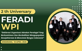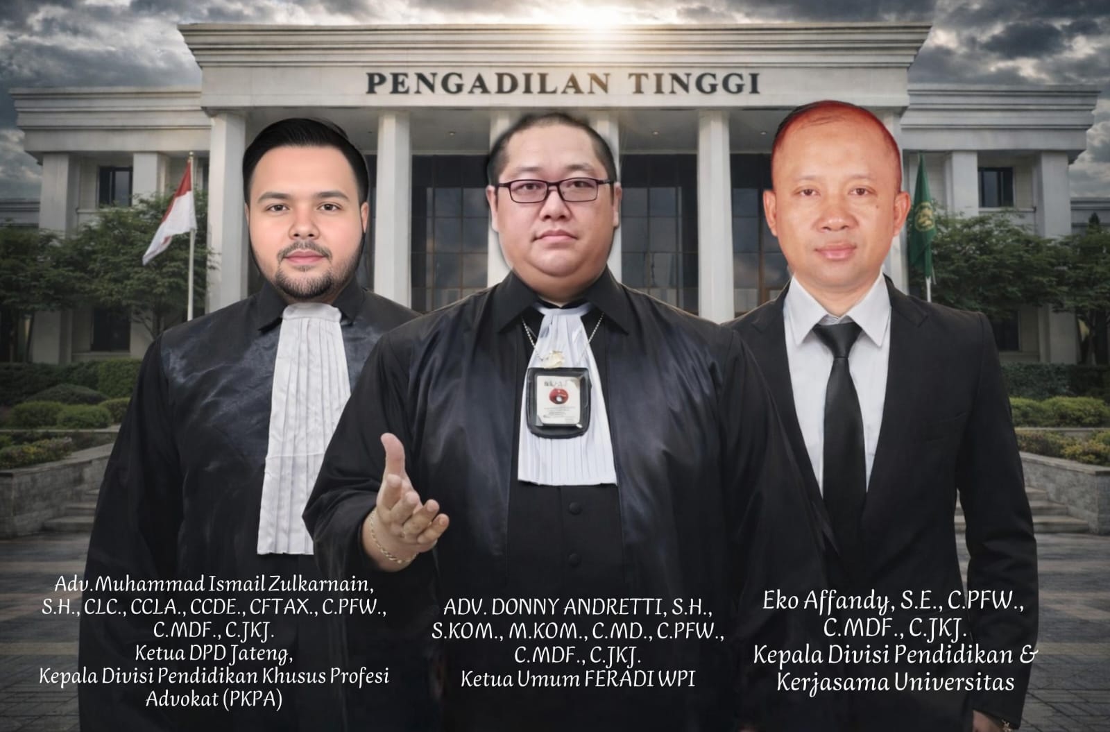 Eko Affandy, S.E., C.PFW., C.MDF., C.JKJ. selaku Kepala Divisi (KADIV) DPP FERADI WPI. Menyampaikan untuk 12 Maret 2026 ini ada 4 ( Empat ) Advokat FERADI WPI yang akan disumpah, dan saat ini sudah ada 6 orang lagi yang sedang proses melengkapi berkas untuk sumpah advokat di Pengadilan Tinggi Semarang melalui FERADI WPI gelombang berikutnya.