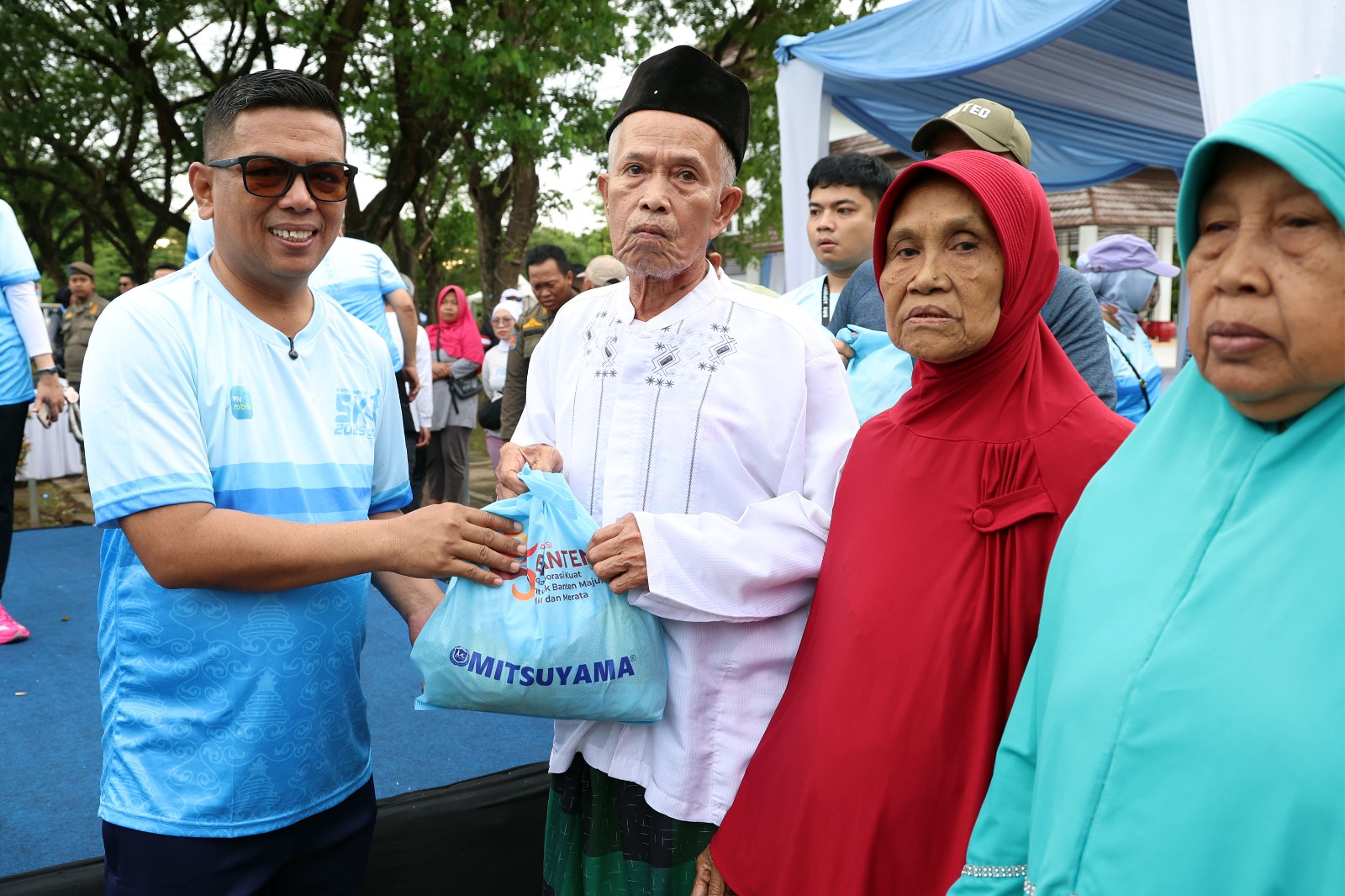 Selain melepas peserta lomba, Andra Soni juga menyerahkan beberapa paket bantuan sembako untuk warga sekitar kawasan KP3B.