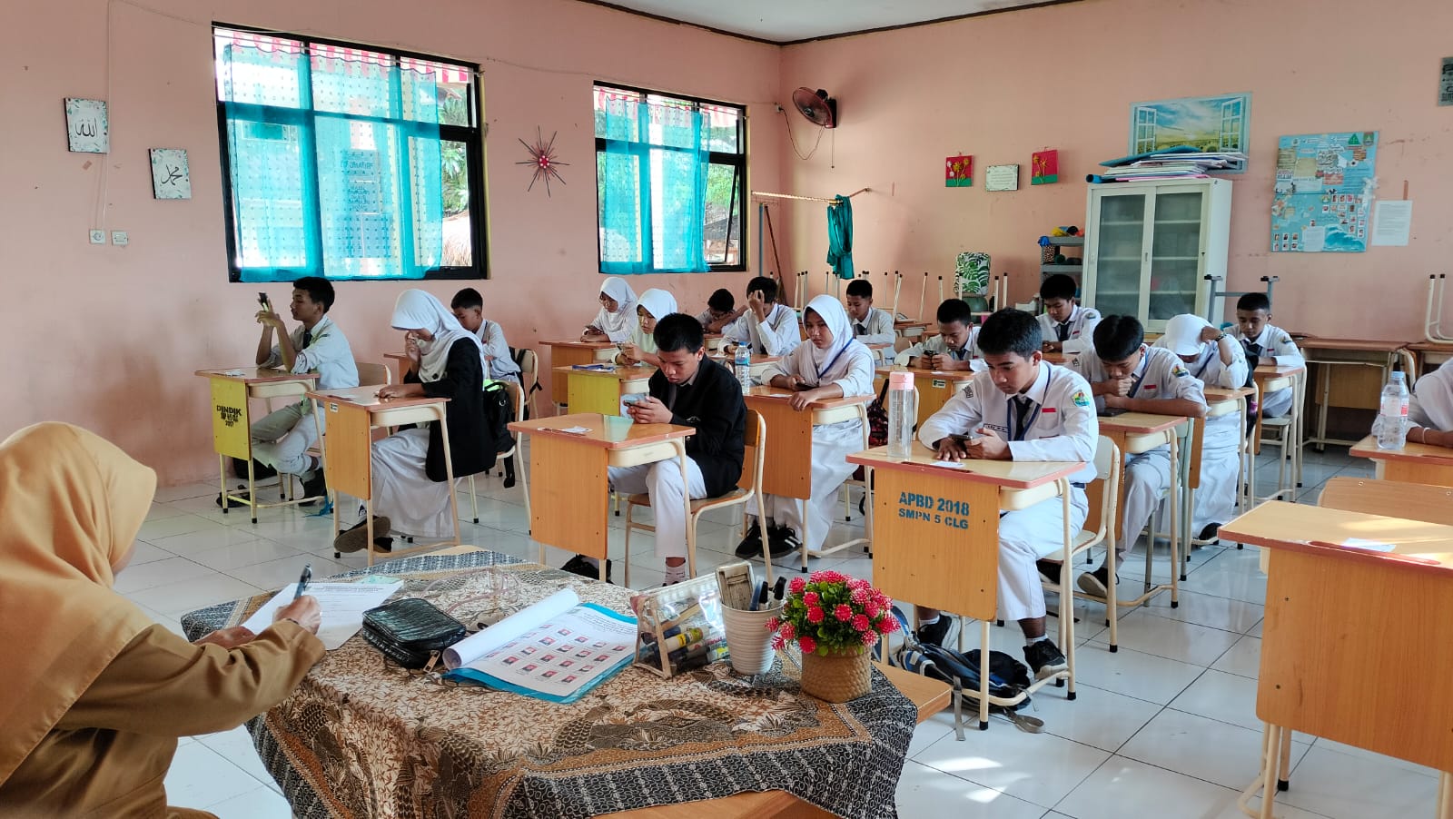 Kepala SMP Negeri 5 Cilegon, Dr. M. Asholahudin, S.Pd., M.Pd., menjelaskan bahwa ujian sekolah kali ini diikuti oleh seluruh siswa kelas 9 dari rombel 9A sampai 9I. “Alhamdulillah hari pertama semua siswa hadir. Kami berharap anak-anak lebih teliti dalam mengerjakan ujian sekolah sehingga bisa mendapatkan hasil yang memuaskan,” ujarnya saat memantau pelaksanaan ujian.