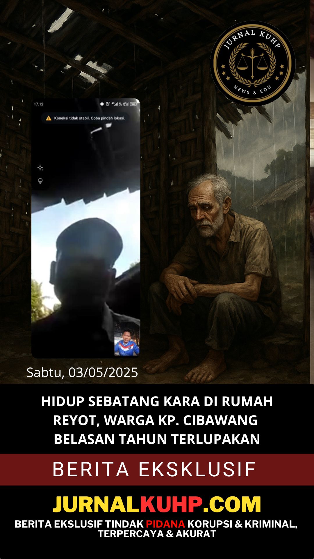 lHidup Sebatang Kara di Rumah Reyot, Warga Kp. Cibawang Terlupakan Nestapa mendalam menyelimuti seorang lansia bernama Nusi, yang telah belasan tahun hidup sendiri di rumah reyot di Kampung Cibawang, Desa Kubang Baros, Serang. Tanpa penghasilan, tanpa keluarga, dan tanpa perhatian dari pemerintah, Nusi bertahan hidup dari belas kasih warga sekitar. Rumah bilik bambu yang rapuh, lantai tanah becek saat hujan, dan atap bocor menjadi saksi bisu kesepiannya. 🗣 “Kami sudah melaporkan ke kelurahan dan kecamatan, tapi belum ada tindakan,” ujar warga setempat. 📩 Redaksi @jurnalkuhpcom telah menginformasikan hal ini kepada Wakil Gubernur Banten dan akan terus mengawal agar pemerintah desa dan kecamatan segera bertindak. Baca Berita Selengkapnya: https://jurnalkuhp.com/hidup-sebatang-kara-di-rumah-reyot-warga-kp-cibawang-belasan-tahun-terlupakan/ #Kemanusiaan #Serang #Cinangka #KisahNusi #JurnalKUHP #Banten #RTLH #LansiaTerlupakan #KeadilanSosial