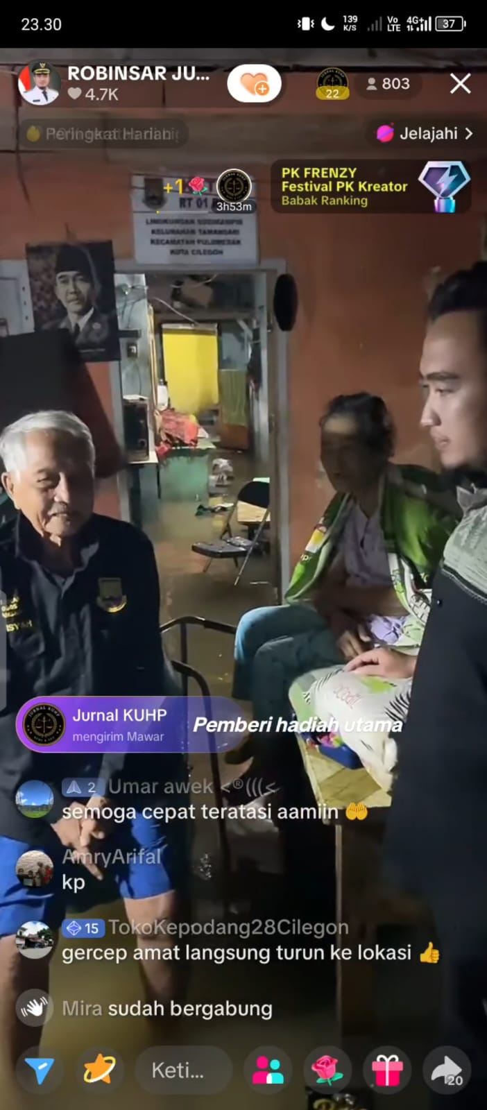 Menanggapi situasi tersebut, Wali Kota Cilegon, Robinsar, langsung turun ke lapangan untuk meninjau lokasi rawan banjir. Kunjungan lapangan ini disiarkan langsung melalui akun TikTok @robinsarwalikotacilegon dan mendapat ribuan komentar positif dari masyarakat.