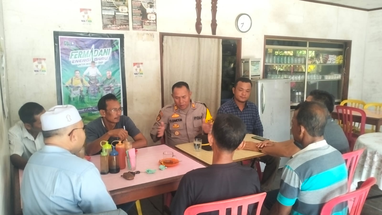 Pagi ini Kapolsek Tempuling melaksanakan silaturahmi dan tatap muka di salah satu kedai kopi milik Sdra. Umar di Jl. Propinsi RT. 06 RW. 04 Kel. Sungai Salak Kec. Tempuling dengan Ketua LPTQ Kec. Tempuling Sdra. Ustad. Armizi, Tokoh masyarakat Sdra. M. Azrin dan Ketua Pemuda RT. 06 Sungai Salak Sdra. Anto serta warga yang ada di kedai kopi tersebut untuk mewujudkan dan menjaga keamanan yang aman dan kondusif selama pelaksanaan tahapan Pemilihan Kepala Daerah dalam Pilkada Riau di wilayah Kecamatan Tempuling. Kamis (24/10/2024).