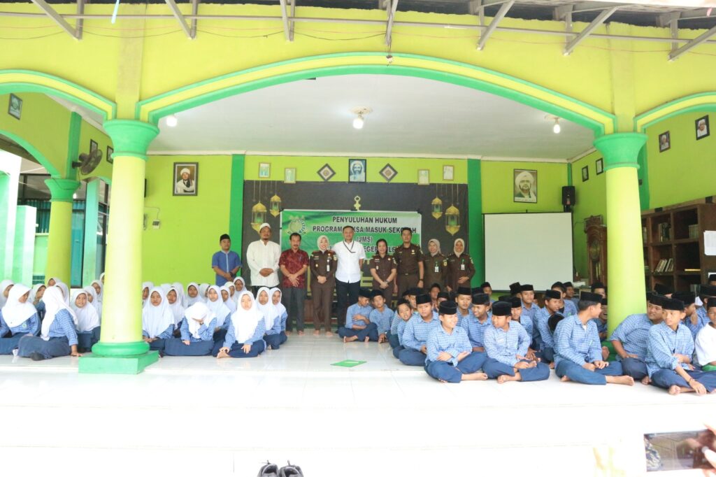 Kepala Kejaksaan Negeri Cilegon Ibu Diana Wahyu Widiyanti, S.H., M.H. bersama Kasi Intelijen Kejari Cilegon, Bpk. Feby Gumilang, S.H., M.H. beserta Kasubsi Intelijen melakukan kegiatan Jaksa Masuk Sekolah yang pada kesempatan ini dilaksanakan di Pondok Pesantren Darul Musthofa.