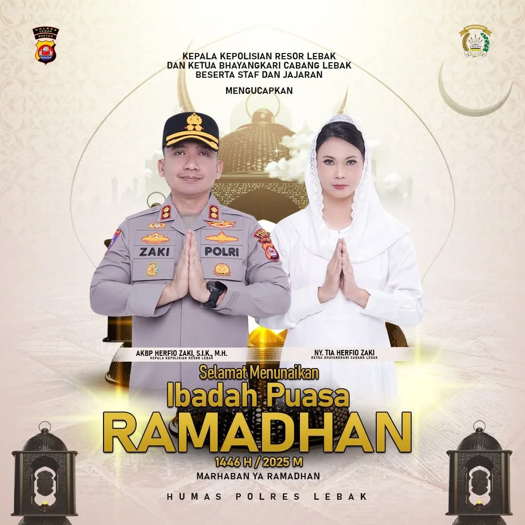 LEBAK, JURNALKUHP.COM – Kepala Kepolisian Resor (Kapolres) Lebak bersama Ketua Bhayangkari Cabang Lebak beserta seluruh staf dan jajaran, menyampaikan ucapan selamat menunaikan ibadah puasa kepada seluruh umat Muslim, khususnya masyarakat Lebak, dalam menyambut bulan suci Ramadhan 1446 H. Jumat (28/2/2025).