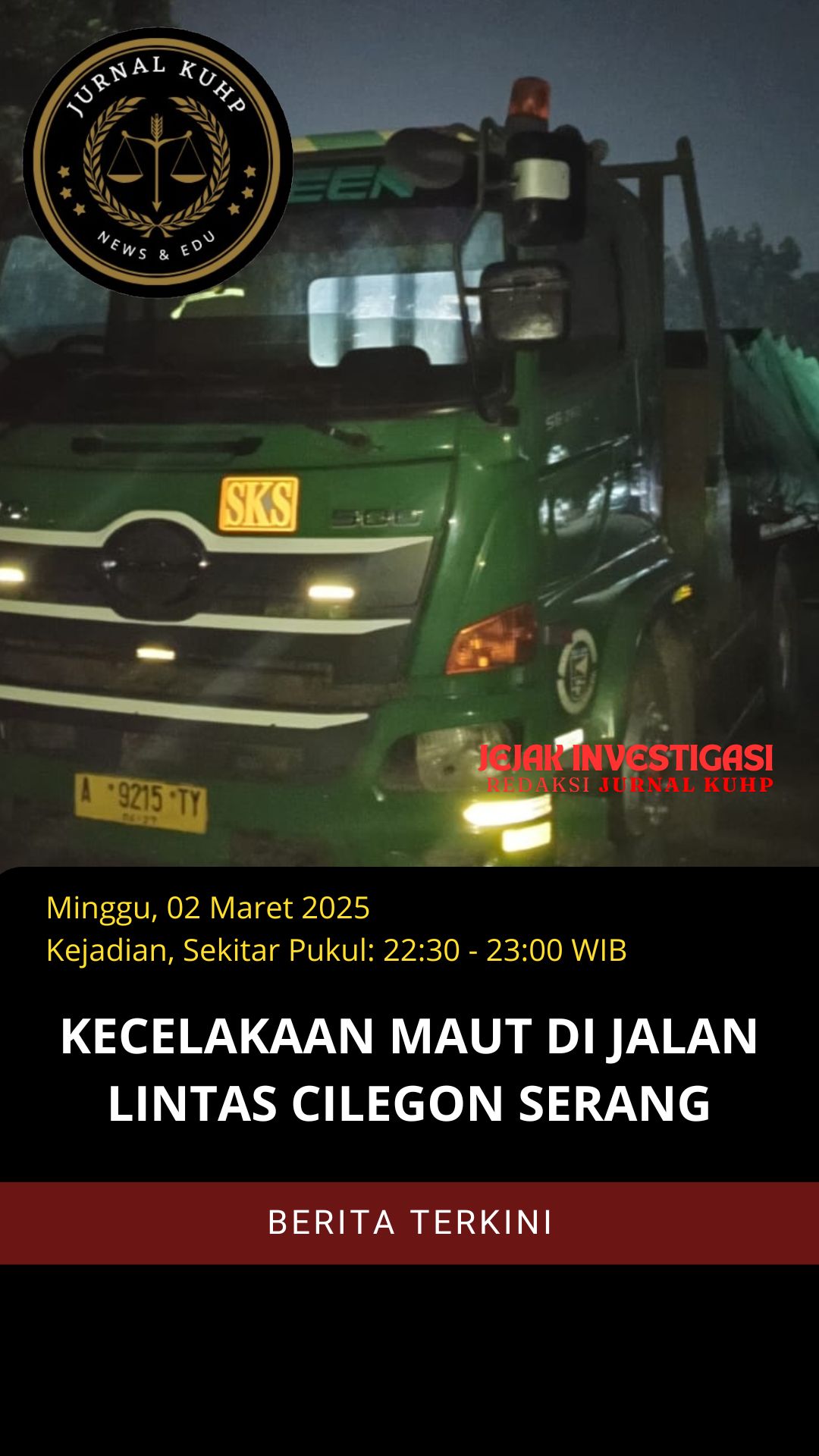 Korban di ketahui berinisial A meninggal ditempat dengan kondisi tubuh yang hancur berantakan pada malam (02/02/2025) pukul 22:05 di jalan lintas cilegon tepat nya di depan taman al-hadid cilegon simpang yang di lindas oleh mobil trailer yang lagi bermuatan koil.