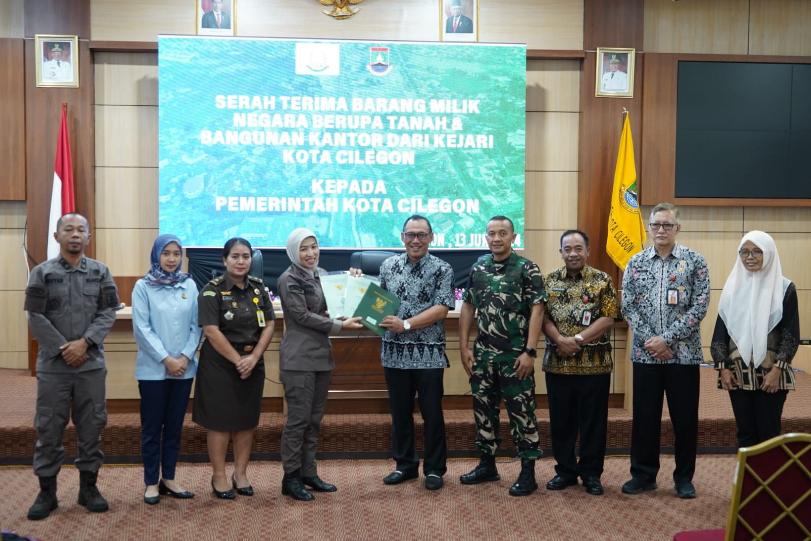 CILEGON, Kamis 13 Juni 2024. JURNALKUHP.COM – Kejaksaan Negeri (Kejari) Kota Cilegon secara resmi menyerahkan barang milik negara berupa tanah dan bangunan kantor kepada Pemerintah Kota (Pemkot) Cilegon, Kamis 13 Juni 2024. Proses penyerahan asset dilakukan Kepala Kejari Cilegon Diana Wahyu Widiyanti dan Wali Kota Cilegon Helldy Agustian di Aula Setda Kota Cilegon.