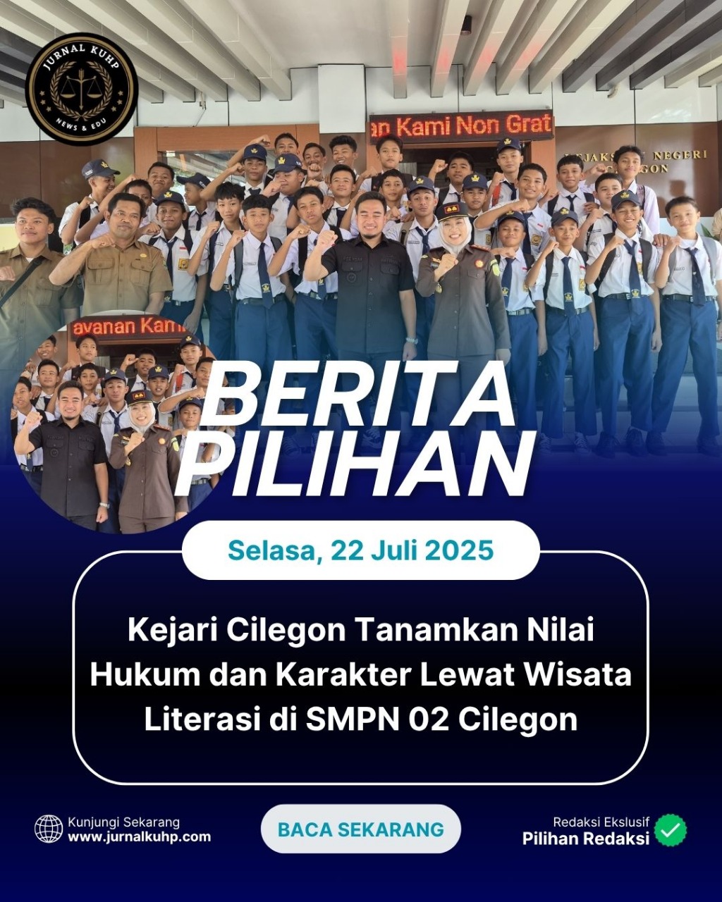 Dengan terus digalakkannya program Wisata Literasi Hukum, Kejari Cilegon berharap dapat mencetak generasi muda yang tidak hanya cerdas secara akademik, tetapi juga tangguh secara karakter dan memiliki kesadaran hukum yang kuat sejak dini.
