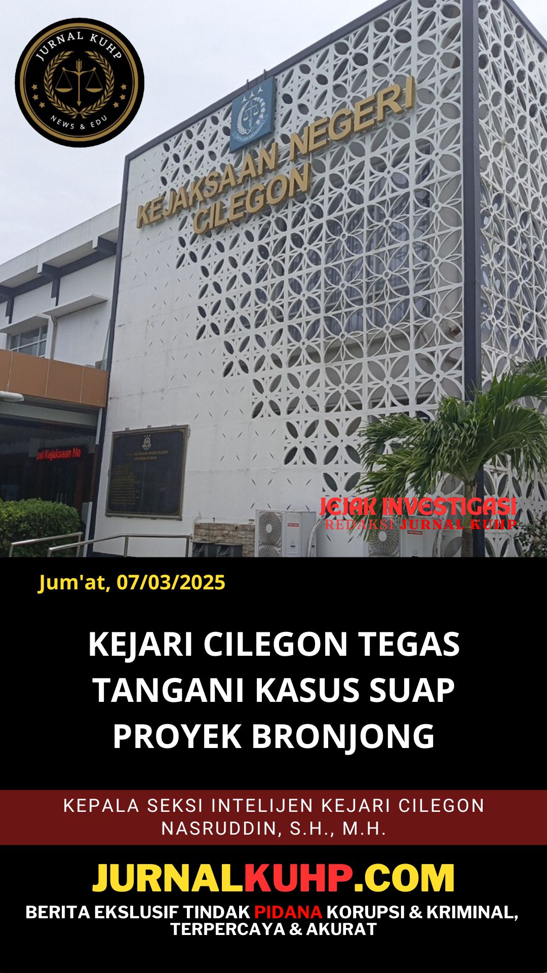 Kepala Seksi Intelijen Kejari Cilegon, Nasruddin, S.H., M.H., dalam wawancara dengan media Jurnal KUHP menegaskan bahwa pihaknya akan menangani kasus ini secara profesional dan transparan.