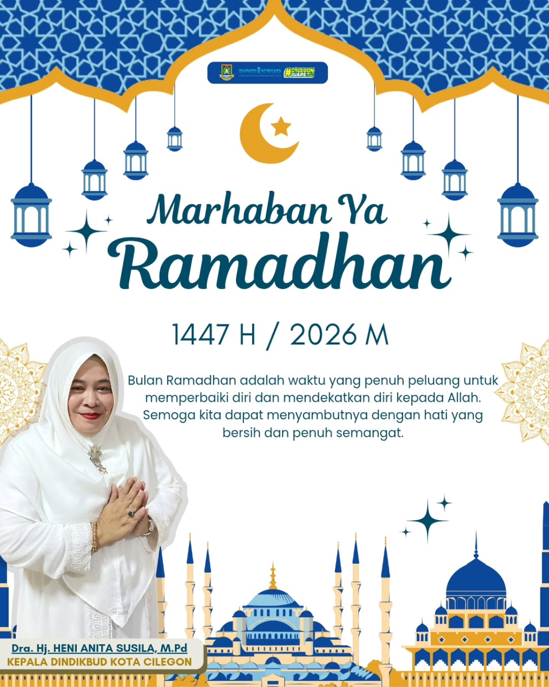 “ Kami segenap keluarga besar Dinas Pendidikan dan Kebudayaan Kota Cilegon mengucapkan Selamat Menunaikan Ibadah Puasa, Marhaban Ya Ramadhan 1447 H / 2026 M. Semoga bulan suci ini menjadi momentum bagi kita semua untuk meningkatkan keimanan dan ketakwaan kepada Allah SWT, mempererat tali silaturahmi, serta menumbuhkan semangat kebersamaan, kepedulian, dan keikhlasan dalam menjalankan tugas dan pengabdian di dunia pendidikan dan kebudayaan,” ujarnya.