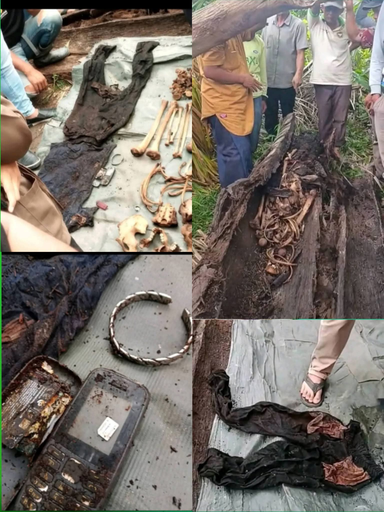 “Pohon aren itu tumbang dan ada retakannya. Setelah dibuka, terlihat tulang manusia. Kami langsung panggil warga dan kepala dusun. Saat itu kami belum tahu jasad siapa yang ditemukan,” ujar Riyan.