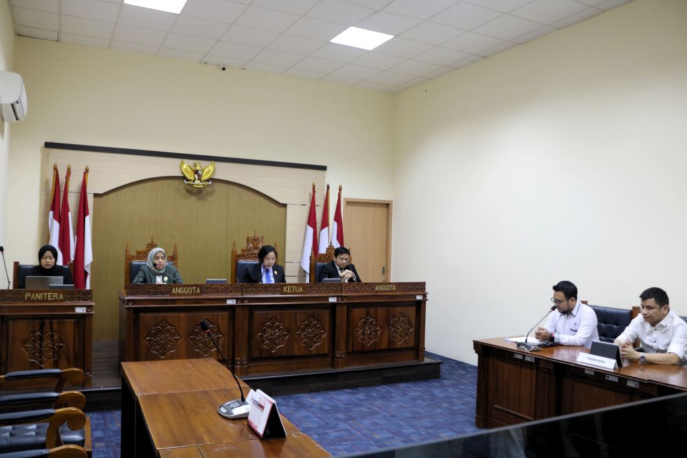 Sidang dilaksanakan di Ruang Sidang Akuntabel KI Pusat dan dipimpin oleh Ketua Majelis Komisioner Rospita Vici Paulyn, didampingi Anggota Majelis Komisioner Samrotunnajah Ismail dan Arya Sandhiyudha.