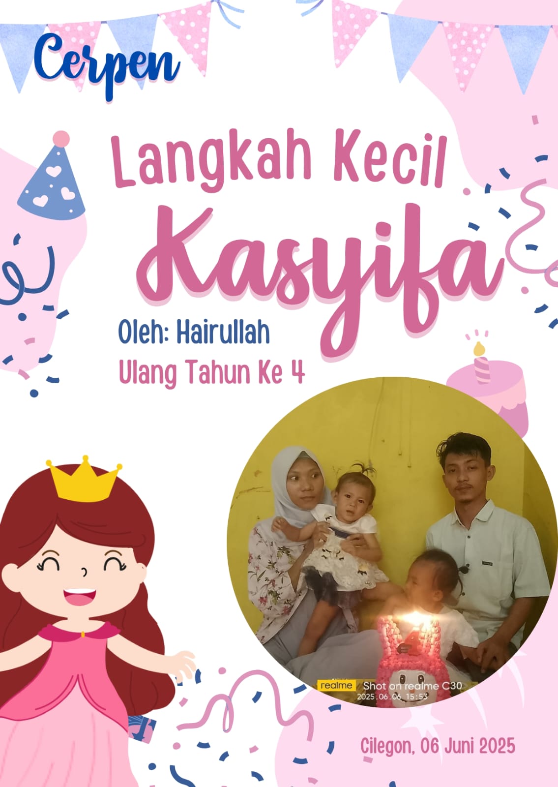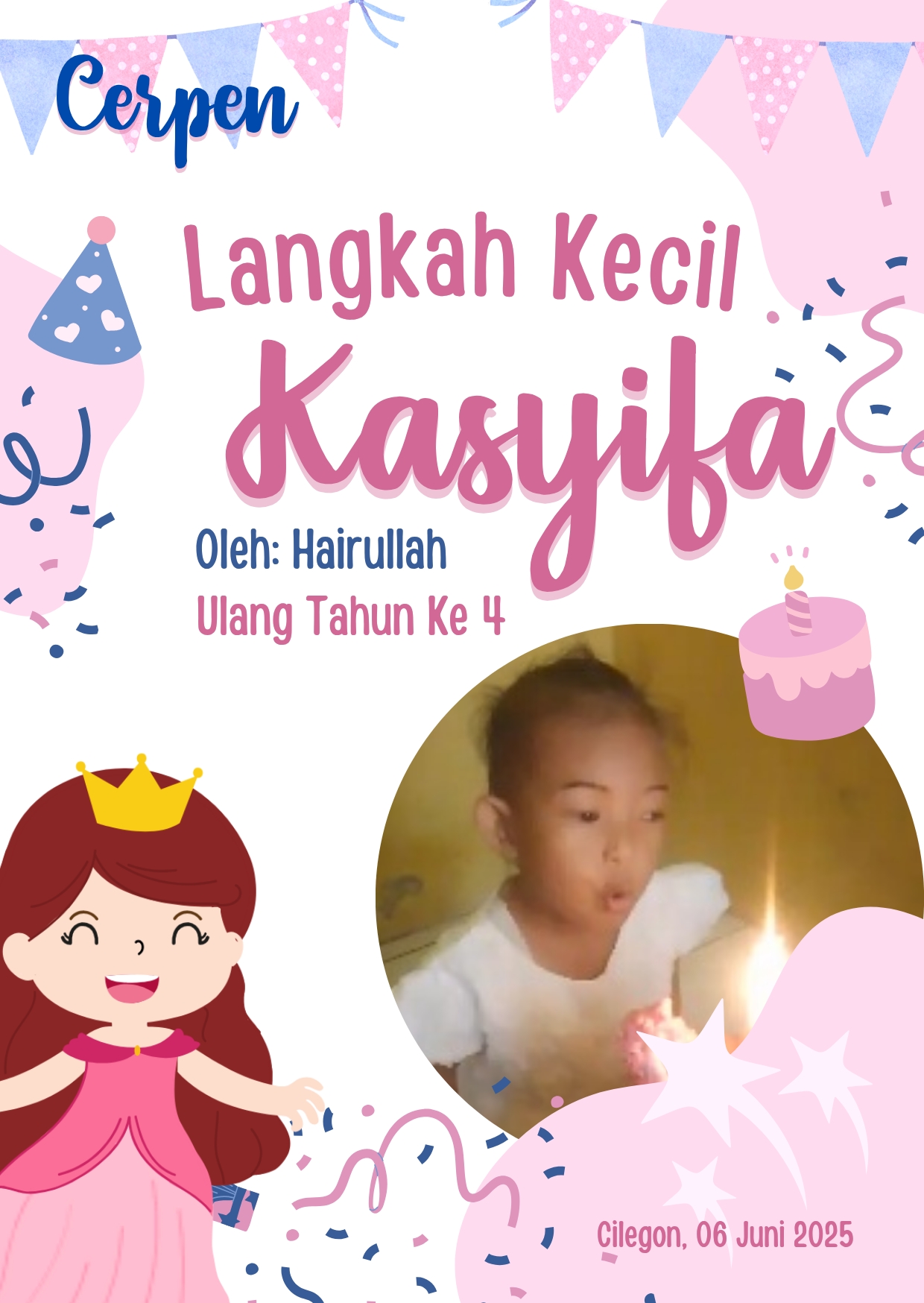 Hari ini, matahari bersinar hangat, seolah turut merayakan ulang tahun putriku yang ketiga. Namanya Kasyifa. Putri kecilku, cahaya dalam setiap langkah perjuanganku. Ia baru tiga tahun, tapi senyumnya sudah mampu menyembuhkan letihku sepulang bekerja.