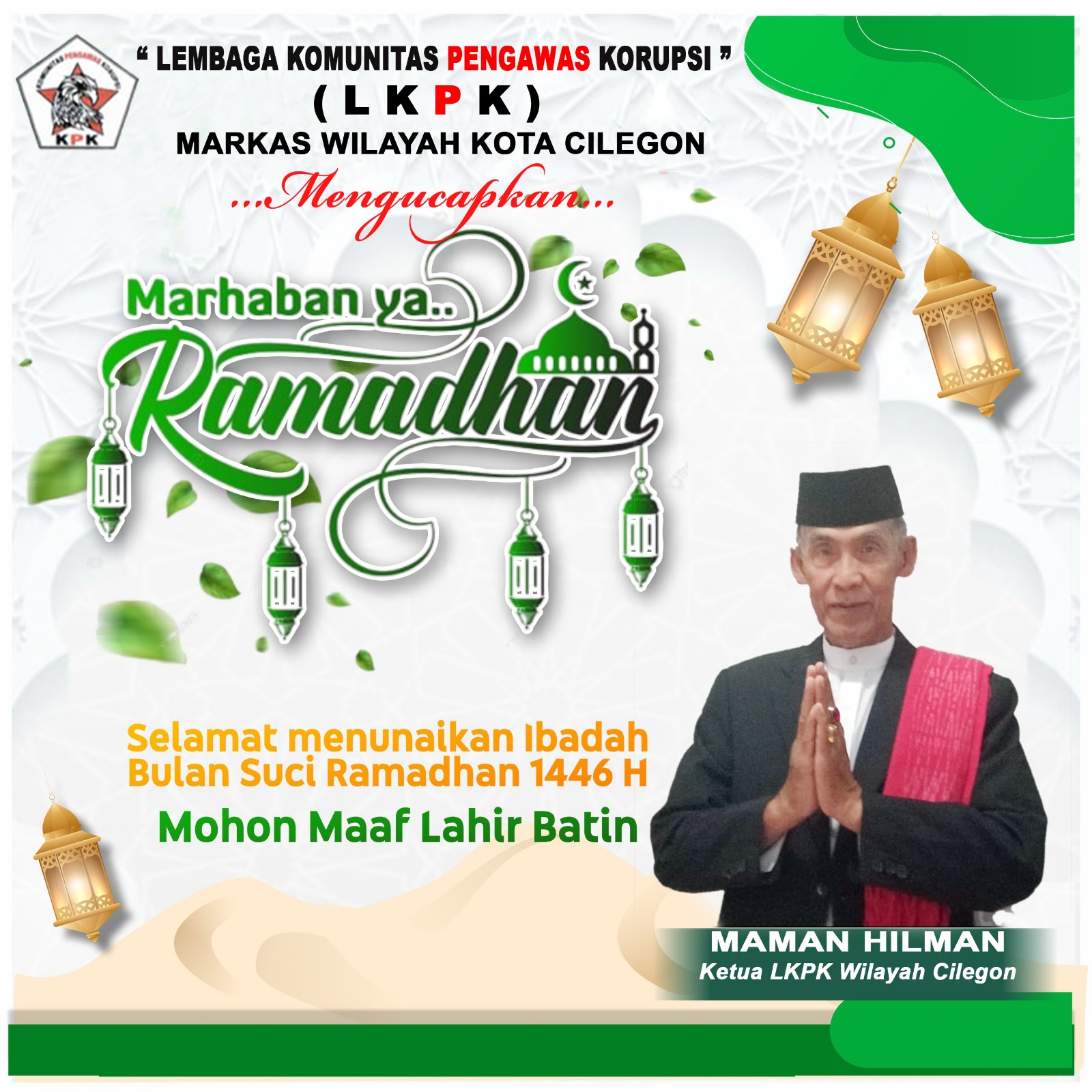 CILEGON, JURNALKUHP.COM – Menyambut datangnya bulan suci Ramadhan 1446 H, Lembaga Komunitas Pengawas Korupsi (LKPK) Markas Wilayah Kota Cilegon mengucapkan selamat menunaikan ibadah puasa kepada seluruh umat Muslim, khususnya masyarakat Kota Cilegon.