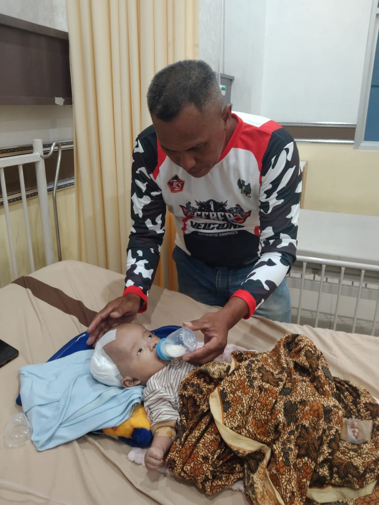 Semenjak dari lahir, kepala M.Darul Mahendra terus membesar karena adanya penumpukan cairan berlebihan di dalam otak. Usianya kini sudah mencapai empat puluh hari, dan bengkak di kepalanya semakin membesar.