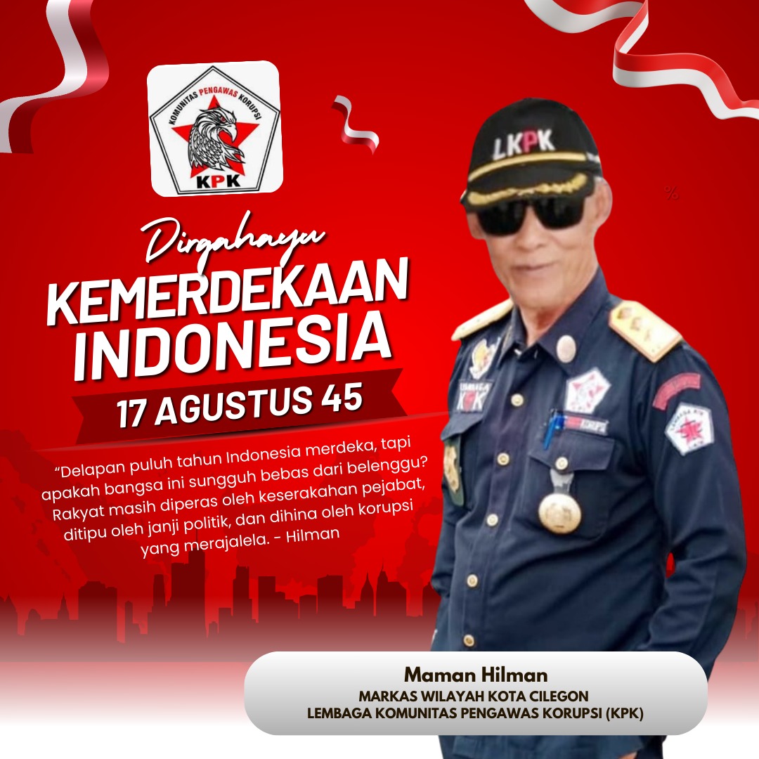 Ketua Markas Wilayah Kota Cilegon Lembaga Komunitas Pengawas Korupsi (KPK), Maman Hilman, menegaskan bahwa kemerdekaan sejati tidak diukur dari bendera yang berkibar, lagu yang dinyanyikan, atau upacara yang digelar. Kemerdekaan sejati, katanya, adalah kebebasan jiwa bangsa dari perbudakan keserakahan, ketidakadilan, dan korupsi.