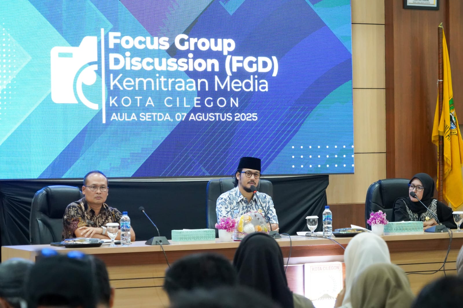Kegiatan FGD tersebut dihadiri langsung oleh Wakil Wali Kota Cilegon Fajar Hadi Prabowo didampingi Kepala Dinas Komunikasi Informatika Statistik dan Persandian Kota Cilegon Agus Zulkarnain serta Kepala Bidang Informasi dan Komunikasi Publik Ipung Ernawati Setianingrum.