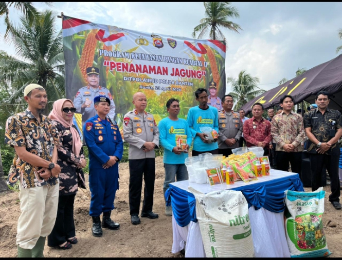CILEGON, JURNALKUHP.COM – Kepolisian Daerah (Polda) Banten melalui Direktorat Polisi Perairan dan Udara (Polairud) menggelar kegiatan penanaman jagung di Kelurahan Bagendung, Kecamatan Cilegon, Kamis (23/4/2026). Kegiatan ini merupakan bagian dari upaya percepatan swasembada pangan nasional sekaligus memperkuat ketahanan pangan berbasis kolaborasi lintas sektor.
