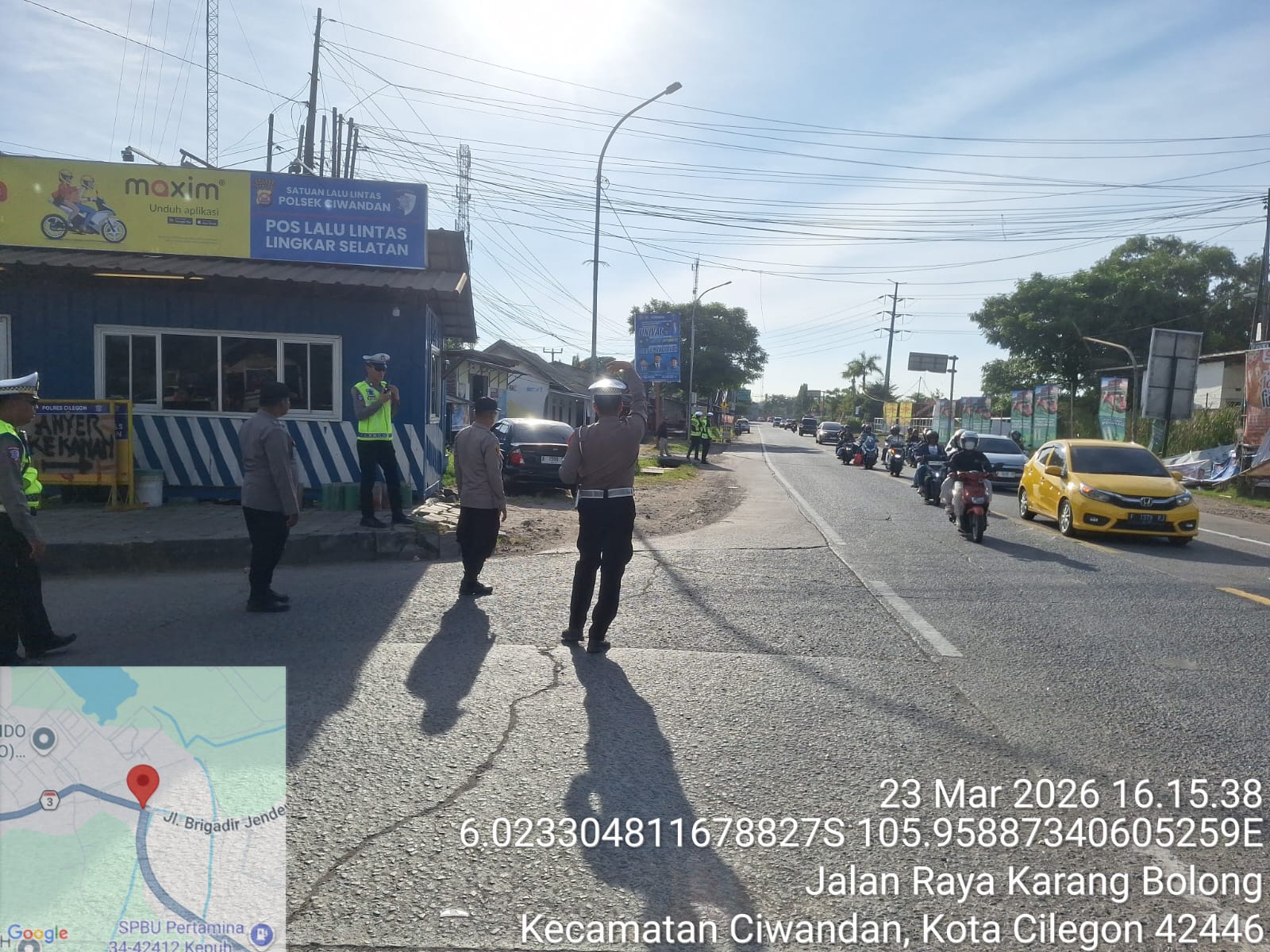 Laporan langsung dari Pos Pengamanan (Pospam) 8 Ciwandan yang disampaikan oleh personel Haris M menyebutkan bahwa saat ini petugas tengah melaksanakan pengalihan di Simpang JLS sebagai bagian dari penerapan rekayasa lalu lintas satu arah dari Anyer menuju Jakarta.