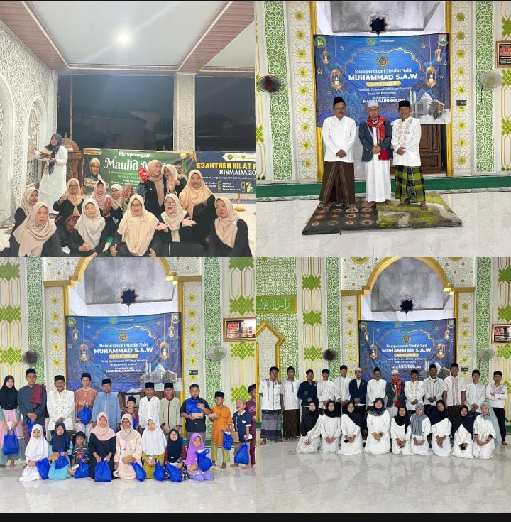 CILEGON,JURNALKUHP.COM – Peringatan Maulid Nabi Muhammad SAW di Masjid Darunnajah, Sabtu (20/9/2025), berlangsung khidmat. Kegiatan ini tidak hanya diisi dengan ceramah keagamaan, tetapi juga santunan untuk anak yatim dari RW 01 dan RW 08 Kampung Kali.