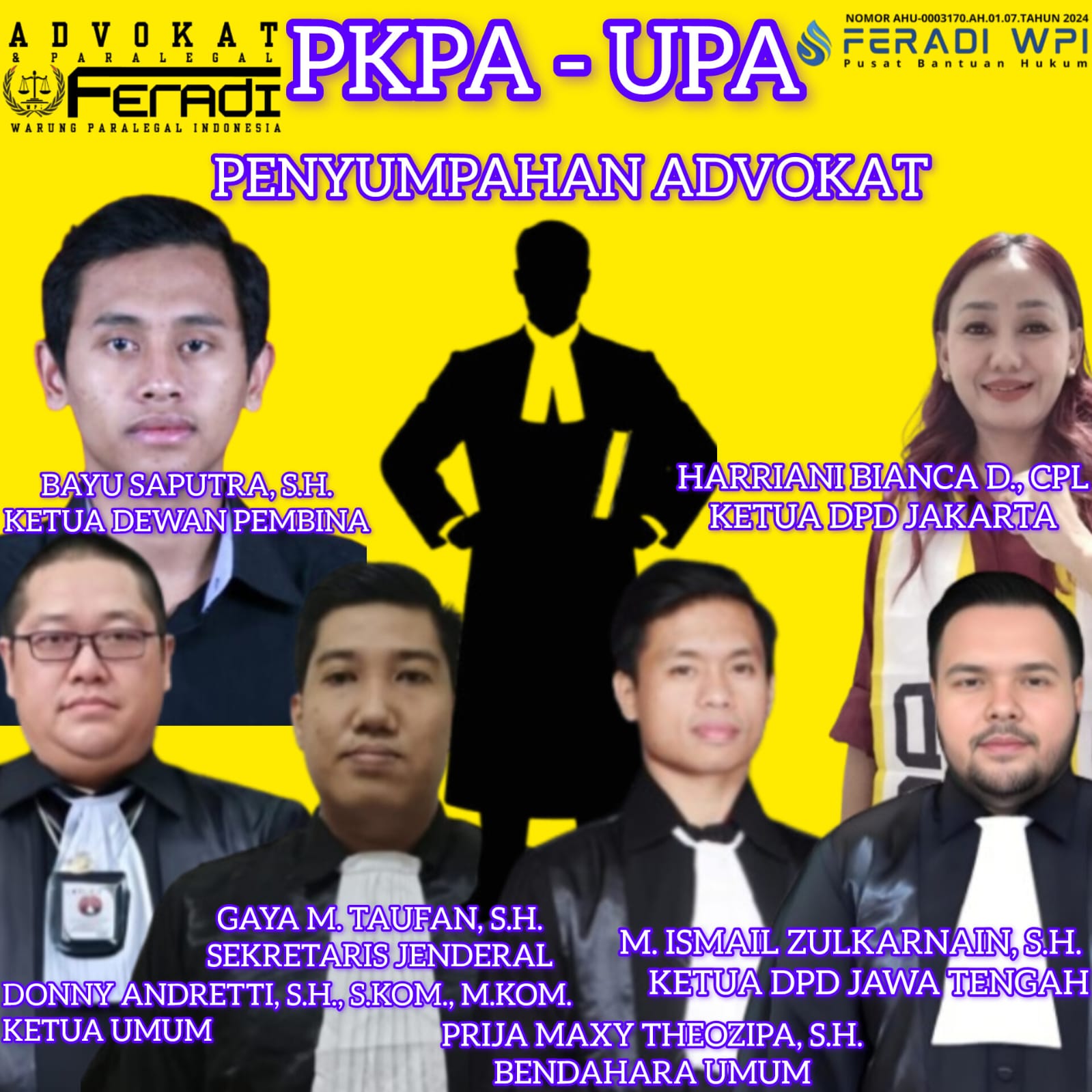 Melalui Perwakilan DPD FERADI WPI JAKARTA DAN DPD FERADI WPI JAWA TENGAH, PKPA & UPA untuk mencetak Advokat yang Profesional dan Berkualitas 2 ( dua ) Universitas tersebut telah melakukan MOU dengan FERADI WPI untuk menyelenggarakan PENDIDIKAN KHUSUS PROFESI ADVOKAT yang Berkualitas dengan pengajar terbaik di bidang hukum. Setelah menempuh PKPA peserta akan mengikuti UJIAN PROFESI ADVOKAT ( UPA ) lalu setelah itu mengikuti Magang Advokat dimana akan di fasilitasi oleh FIRMA HUKUM SUBUR JAYA DAN REKAN yang cabangnya tersebar hampir di seluruh Indonesia, Firma Hukum Subur jaya terdaftar di Kemenkumah R.I. berbadan hukum Firma dengan Nomor AHU-0001173-AH.01.18 Tahun 2024. Yang akan menjadi wadah bagi Para Calon Advokat yang FERADI WPI yang telah mengikuti PKPA DAN Lulus UPA untuk Magang, sehingga Para Calon Advokat FERADI WPI tidak kesulitan mencari tempat magang.