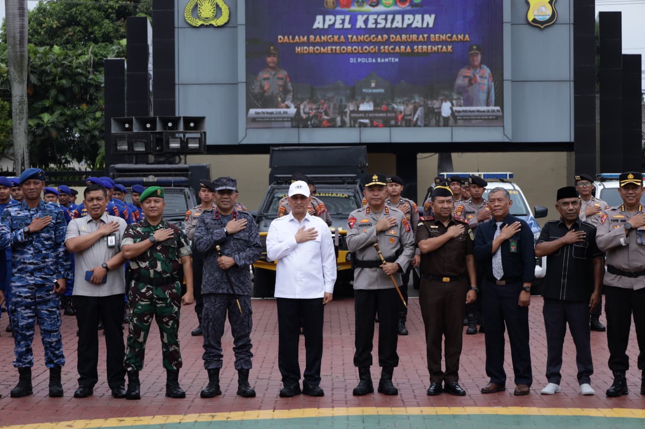 Kapolda Banten menambahkan, Indonesia sebagai negara yang berada di wilayah Ring of Fire memiliki tingkat kerawanan bencana yang tinggi. Berdasarkan data BMKG, 43,8% wilayah Indonesia telah memasuki musim hujan dengan puncak pada November 2025 hingga Januari 2026, yang berpotensi menimbulkan bencana hidrometeorologi seperti banjir, tanah longsor, angin puting beliung, dan gelombang tinggi.