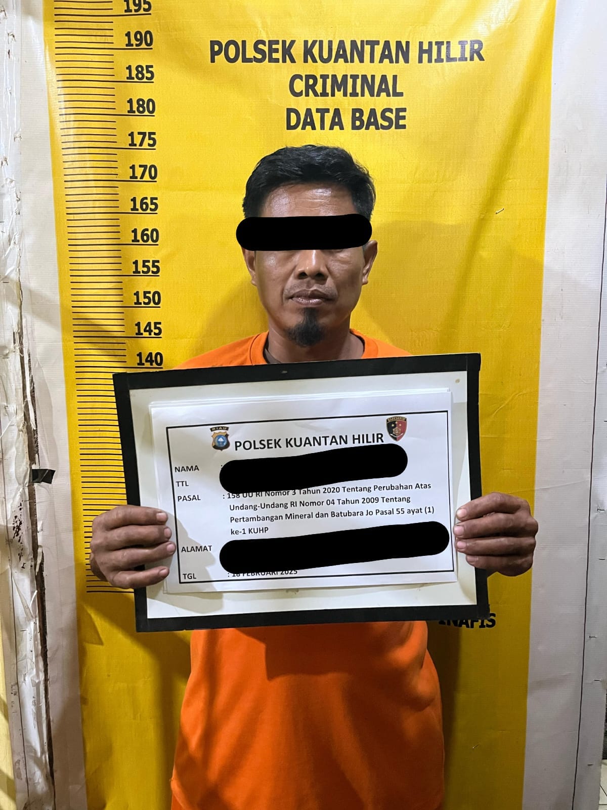 Kapolsek Kuantan Hilir menegaskan bahwa tersangka K akan diproses sesuai hukum yang berlaku. Tersangka dijerat dengan Pasal 158 Undang-Undang Republik Indonesia Nomor 3 Tahun 2020 tentang Perubahan atas Undang-Undang Nomor 4 Tahun 2009 tentang Pertambangan Mineral dan Batubara, juncto Pasal 55 ayat (1) ke-1 KUHP.