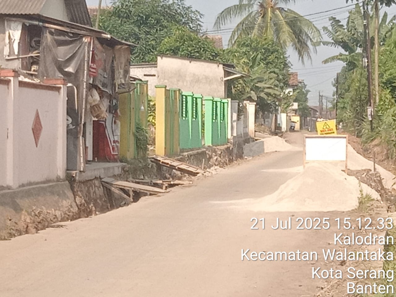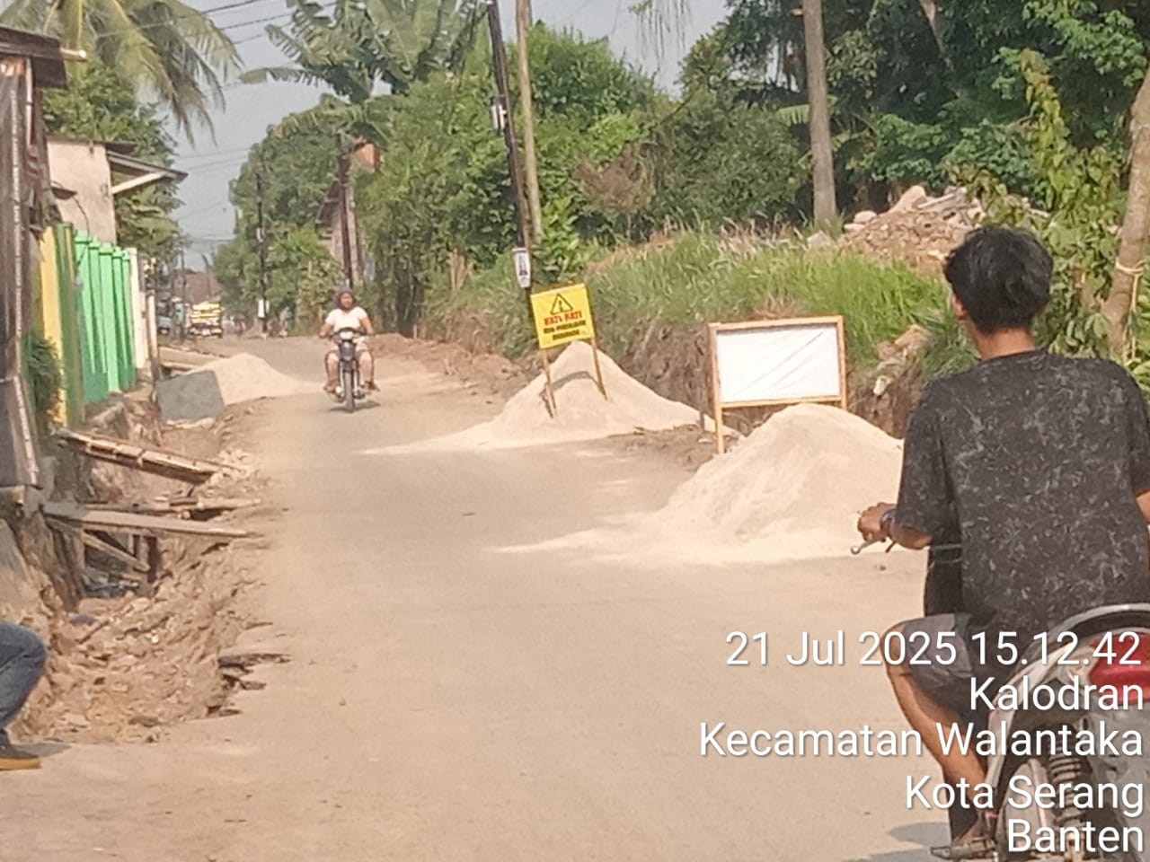 Senin 21/07/2025 saat awak media melintas dilokasi kegiatan terlihat akan adanya matrial yang mengganggu warga yang melintas , karna matrial berada di tengah jalan dan lobang galian saluran air tak diberikan rambu rambu pengamanan ( garis polislen ).
