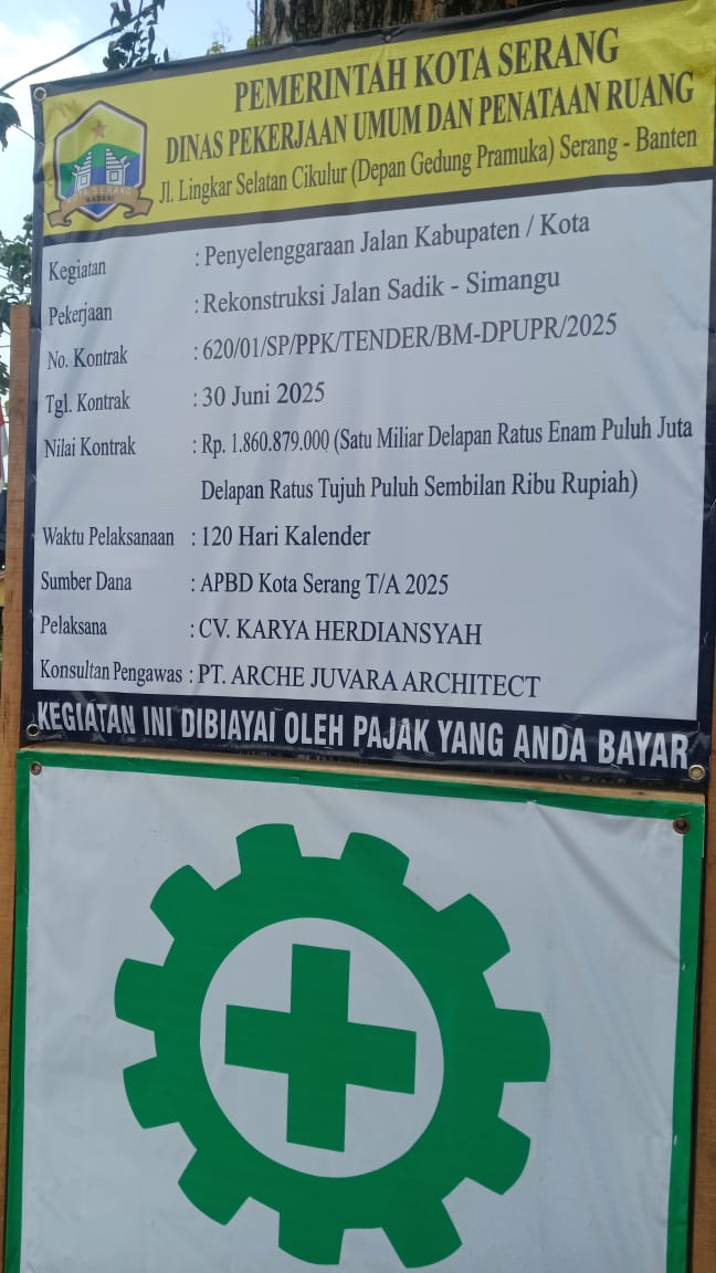 Projek Rekontruksi jalan lingkungan sadik cimangu dengan nilai kontrak Rp 1.860.879.000