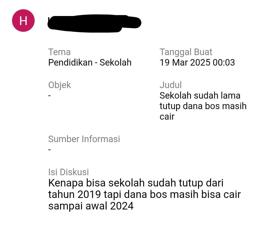“Kenapa bisa sekolah sudah tutup dari tahun 2019 tapi dana BOS masih bisa cair sampai awal 2024,” tulis pengguna tersebut dalam forum diskusi bertema Pendidikan – Sekolah.