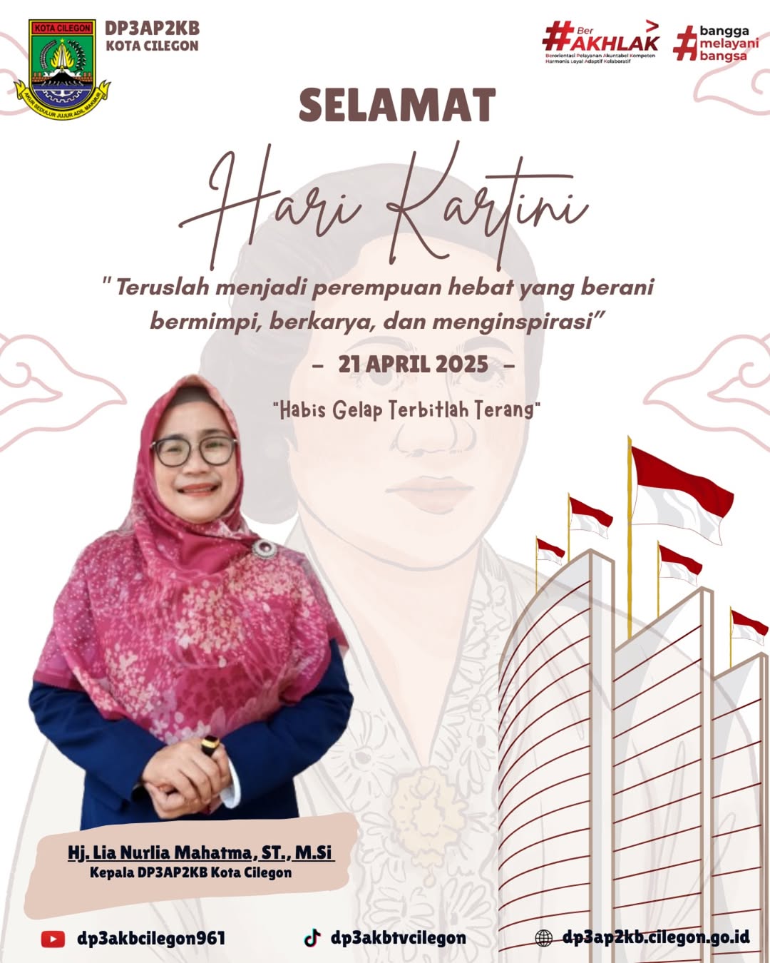 Dalam rangka memperingati Hari Kartini tahun ini, Dinas Pemberdayaan Perempuan, Perlindungan Anak, Pengendalian Penduduk dan Keluarga Berencana (DP3AP2KB) Kota Cilegon mengajak seluruh perempuan untuk melanjutkan perjuangan R.A. Kartini melalui pendidikan, pemberdayaan, dan keterlibatan aktif di berbagai sektor kehidupan.