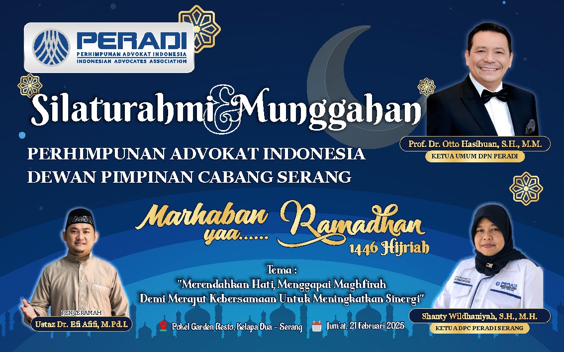 SERANG, JURNALKUHP.COM – Dalam semangat kebersamaan dan kepedulian sosial, Dewan Pimpinan Cabang (DPC) Perhimpunan Advokat Indonesia (PERADI) Serang menggelar acara Silaturahmi dan Munggahan yang diisi dengan kegiatan santunan anak yatim pada Jumat, 21 Februari 2025. Acara yang berlangsung hangat di Pokel Garden Resto, Klapa Dua, Serang ini menjadi momentum untuk mempererat tali silaturahmi antaranggota sekaligus berbagi kebahagiaan menjelang bulan suci Ramadan.