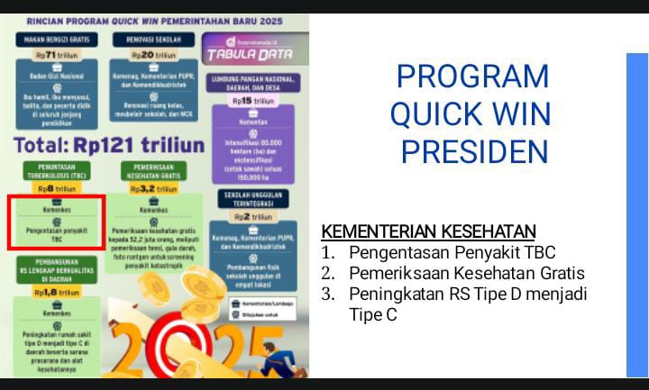 drg. Novita menegaskan bahwa kegiatan ini merupakan respon terhadap program prioritas nasional sekaligus Quick Win Presiden untuk eliminasi TBC pada 2030. “Kami ingin mengejar target dengan melibatkan lintas sektoral, kader, dan lembaga kemasyarakatan dalam edukasi, pengawasan minum obat, serta deteksi dini gejala TBC,” ujarnya.