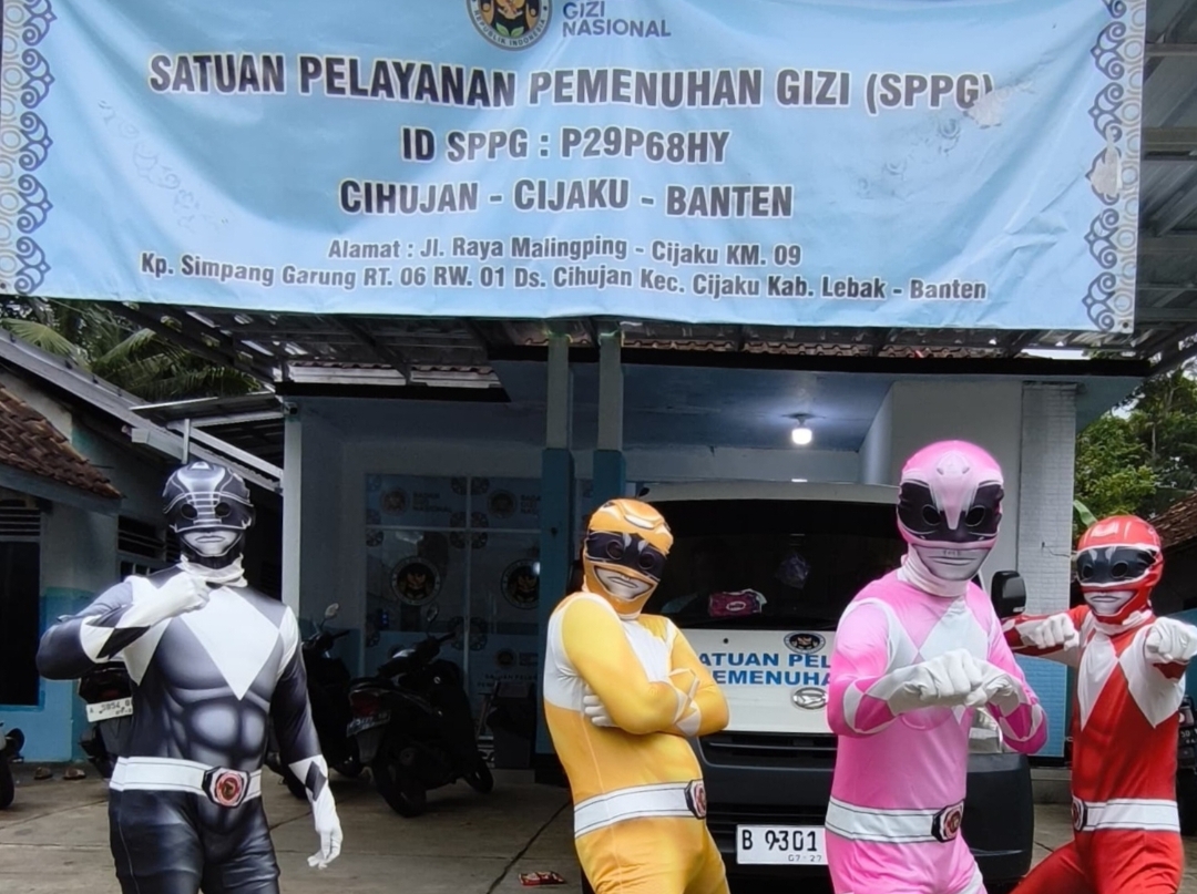 Para petugas yang membagikan MBG tampil mengenakan kostum karakter kartun Power Ranger, sehingga para siswa terlihat antusias, gembira, dan semakin bersemangat saat menerima makanan sehat tersebut.