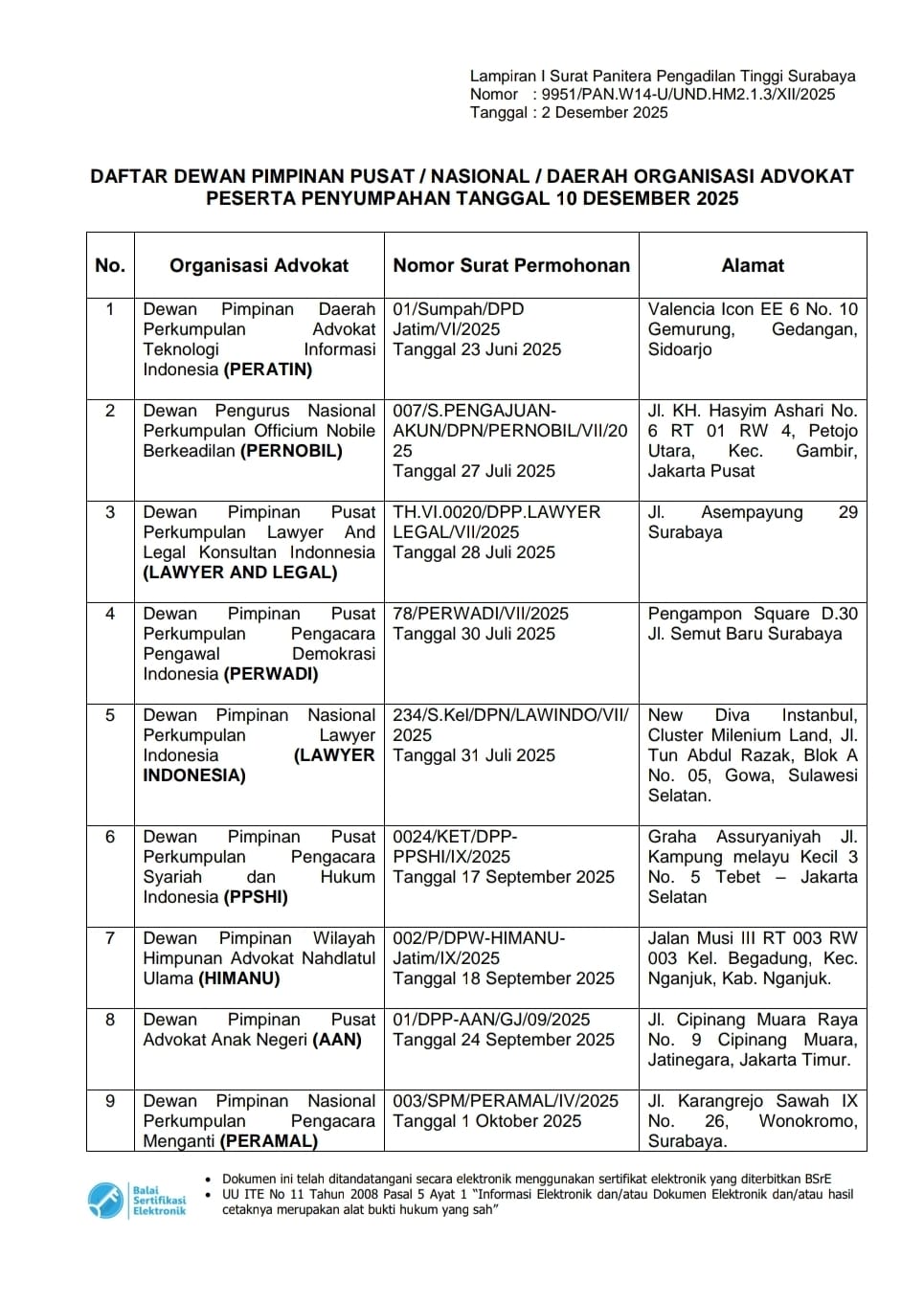 FERADI WPI, Organisasi Advokat yang melakukan terobosan dengan membebaskan Calon Advokat yang mengajukan sumpah Advokat melalui Organisasi Advokat FERADI WPI secara GRATIS di Pengadilan Tinggi Surabaya yang akan dilaksanakan pada tanggal 11 Desember 2025 ini.