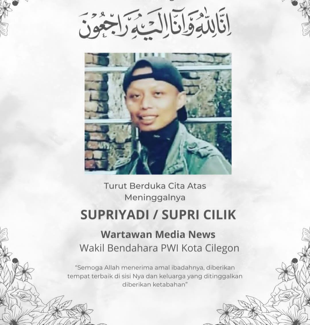 CILEGON,JURNALKUHP.COM — Dunia jurnalistik dan aktivisme Kota Cilegon berduka atas wafatnya Supriyadi, insan pers yang dikenal aktif dalam berbagai kegiatan sosial dan publikasi. Almarhum meninggal dunia di kediamannya di Lingkungan Cikerut RT 01 RW 07, Kelurahan Karang Asem, Kecamatan Cibeber, pada Senin (24/11/2025).