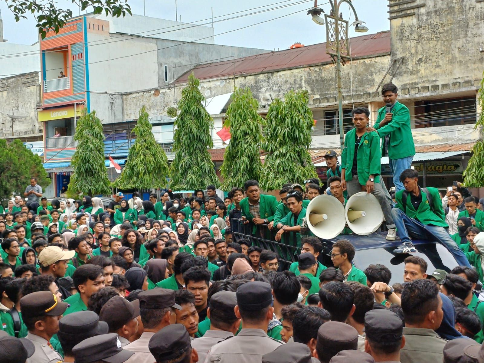 Ardhi menyatakan massa yang dikerahkan dalam aksi demo ini tidak hanya dari BEM, tapi seluruh mahasiswa Unimal.