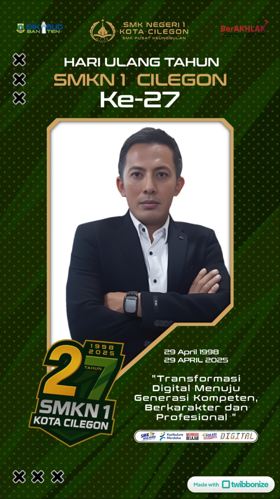 Selamat ulang tahun ke-27 untuk SMKN 1 Cilegon. Semoga terus menjadi lembaga pendidikan terpercaya yang mencetak lulusan berdaya saing tinggi dan berkontribusi nyata bagi kemajuan bangsa.
