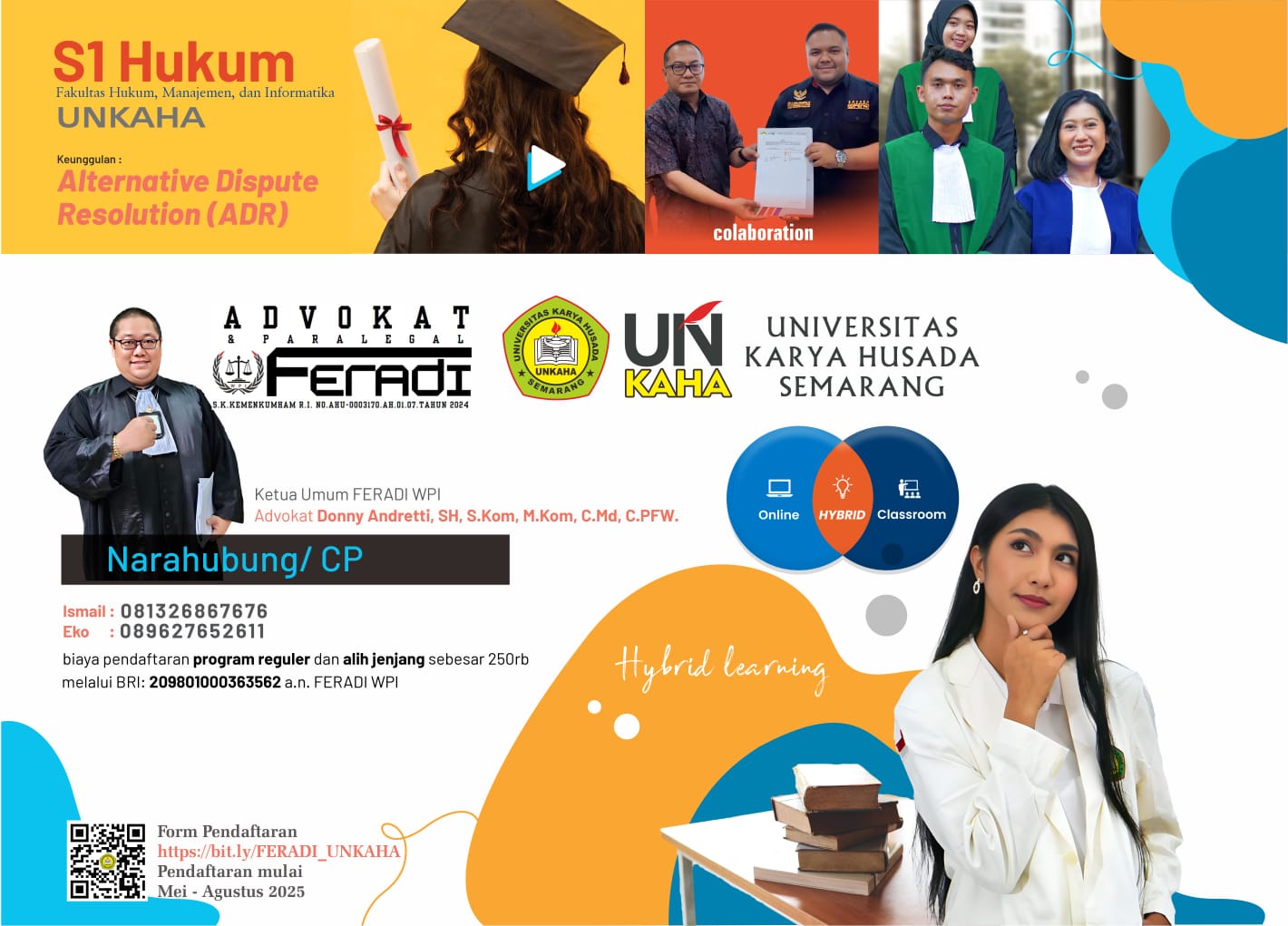 Pendaftaran program ini dibuka mulai Mei hingga Agustus 2025, dan dapat diakses melalui tautan: https://bit.ly/FERADI_UNKAHA
