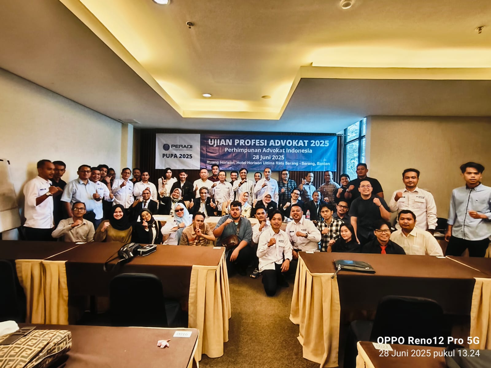 SERANG, JURNALKUHP.COM – Sebanyak 42 peserta mengikuti Ujian Profesi Advokat (UPA) Tahun 2025 yang digelar Perhimpunan Advokat Indonesia (PERADI) di Serang, Banten, Sabtu (28/6/2025). Bertempat di Ruang Horison, Hotel Horison Ultima Ratu Serang, kegiatan ini menjadi salah satu rangkaian UPA yang diselenggarakan serentak di 39 kota di Indonesia.
